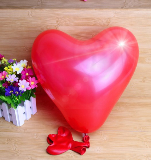 Nafukovací balón má tvar srdca a dá sa nafúknuť héliom alebo vzduchom.