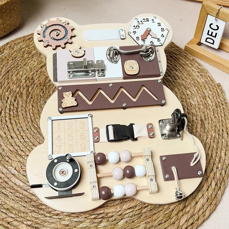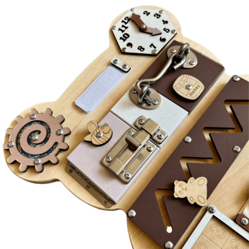 Edukačná doska pre deti v tvare medvedíka je skvelý spôsob, kde sa deti prirodzenou cestou pomocou hry vzdelávajú, rozvíjajú zručnosti, tvorivosť, kreativitu, logické myslenie, trpezlivosť a jemnú motoriku.