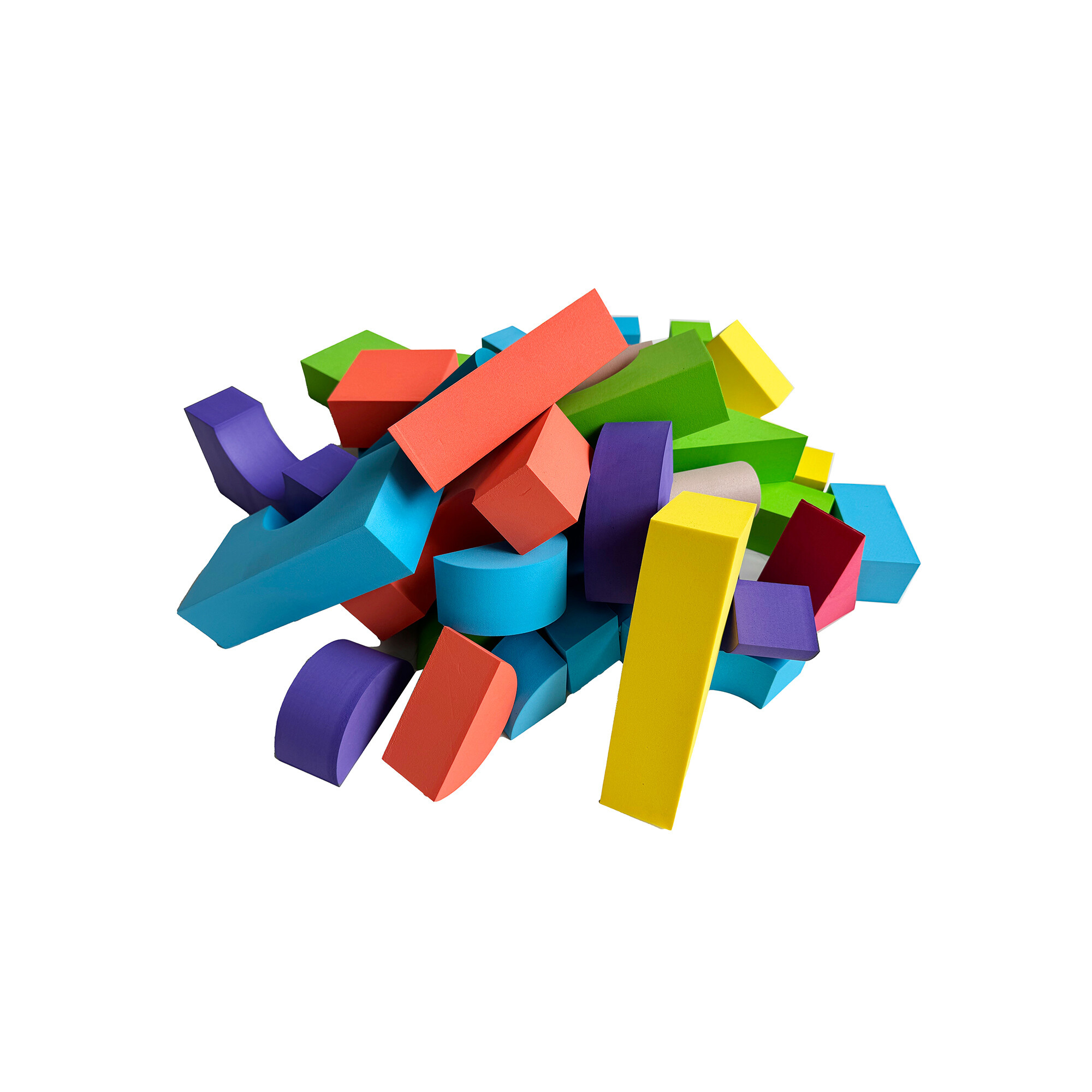 Naša sada obsahuje 52 kusov farebných a tvarovo rozmanitých kociek vyrobených z kvalitnej EVA peny. Vďaka tomu sú kocky ľahké, mäkké a príjemné na dotyk, ideálne pre malé ručičky. Nehrozia žiadne ostré hrany ani nebezpečenstvo zranenia, takže sa vaše deti môžu hrať bez obáv.