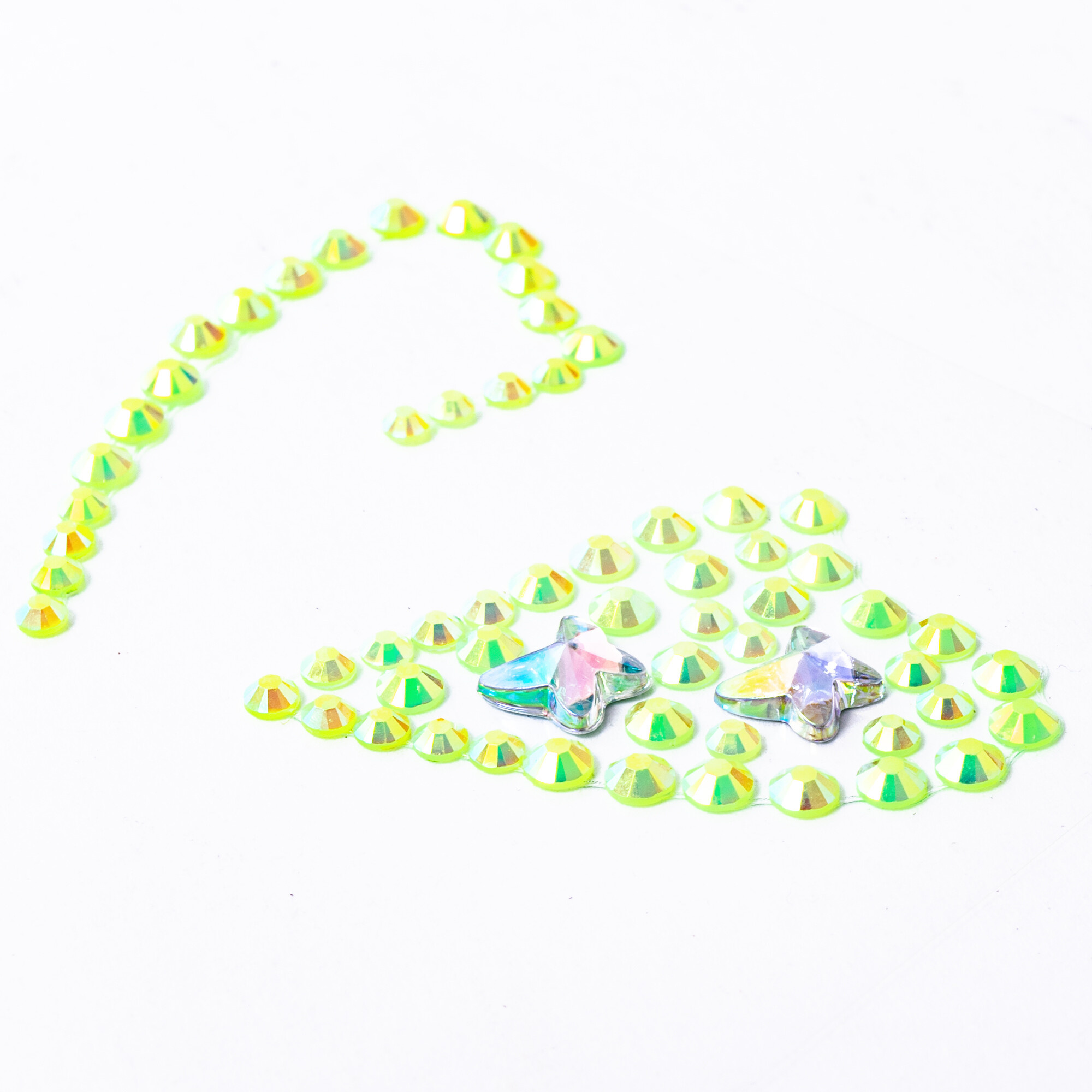 Použitie našich kamienkov je veľmi jednoduché. Stačí ich odlepiť z podkladového papiera a prilepiť na požadované miesto. Môžete ich použiť na tvár, vlasy, nechty alebo akúkoľvek inú časť tela. Kamienky pevne držia na mieste, ale zároveň ich možno ľahko odstrániť bez poškodenia pokožky alebo vlasov. Vďaka tomu môžete meniť svoj vzhľad podľa nálady a príležitosti.