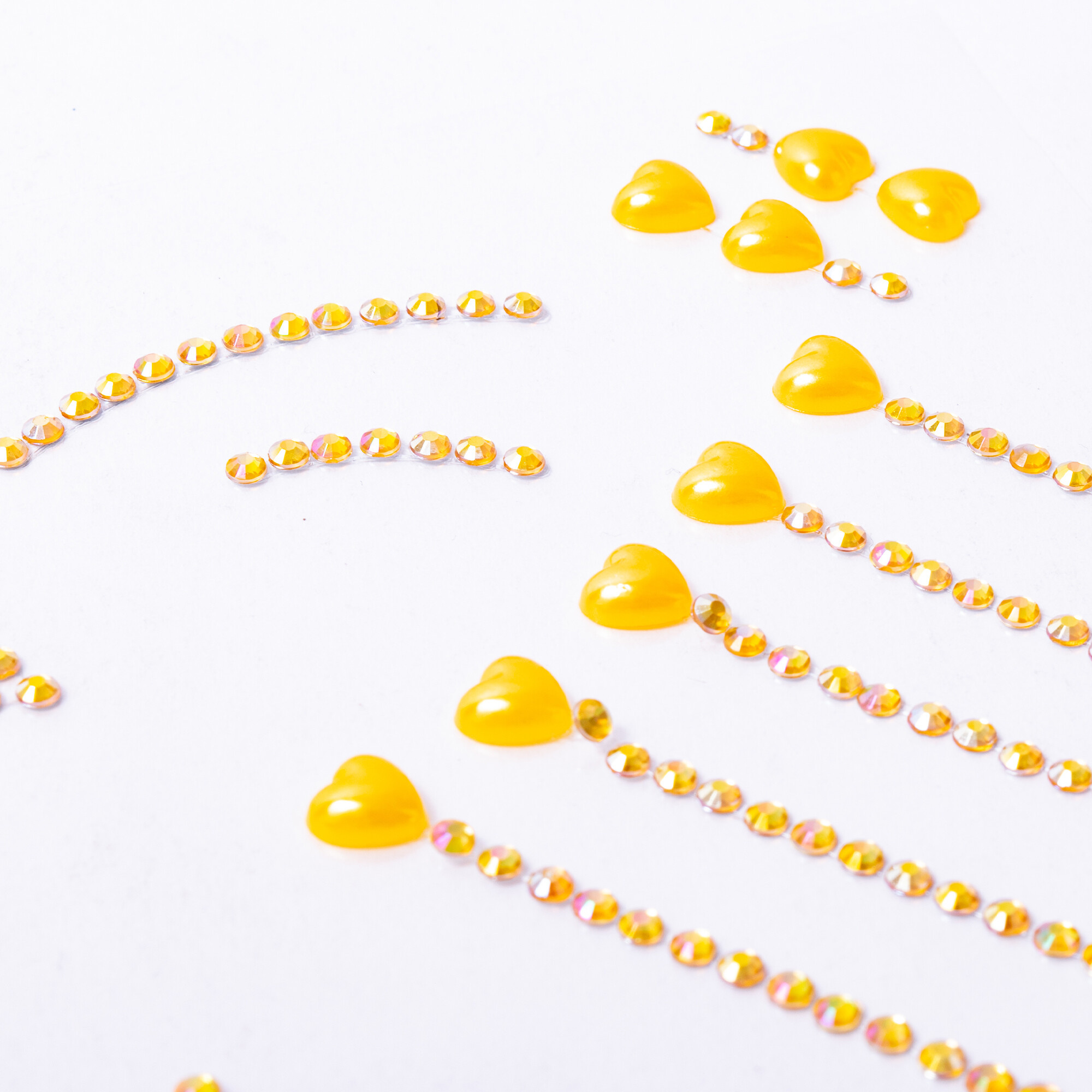Použitie našich kamienkov je veľmi jednoduché. Stačí ich odlepiť z podkladového papiera a prilepiť na požadované miesto. Môžete ich použiť na tvár, vlasy, nechty alebo akúkoľvek inú časť tela. Kamienky pevne držia na mieste, ale zároveň ich možno ľahko odstrániť bez poškodenia pokožky alebo vlasov. Vďaka tomu môžete meniť svoj vzhľad podľa nálady a príležitosti.