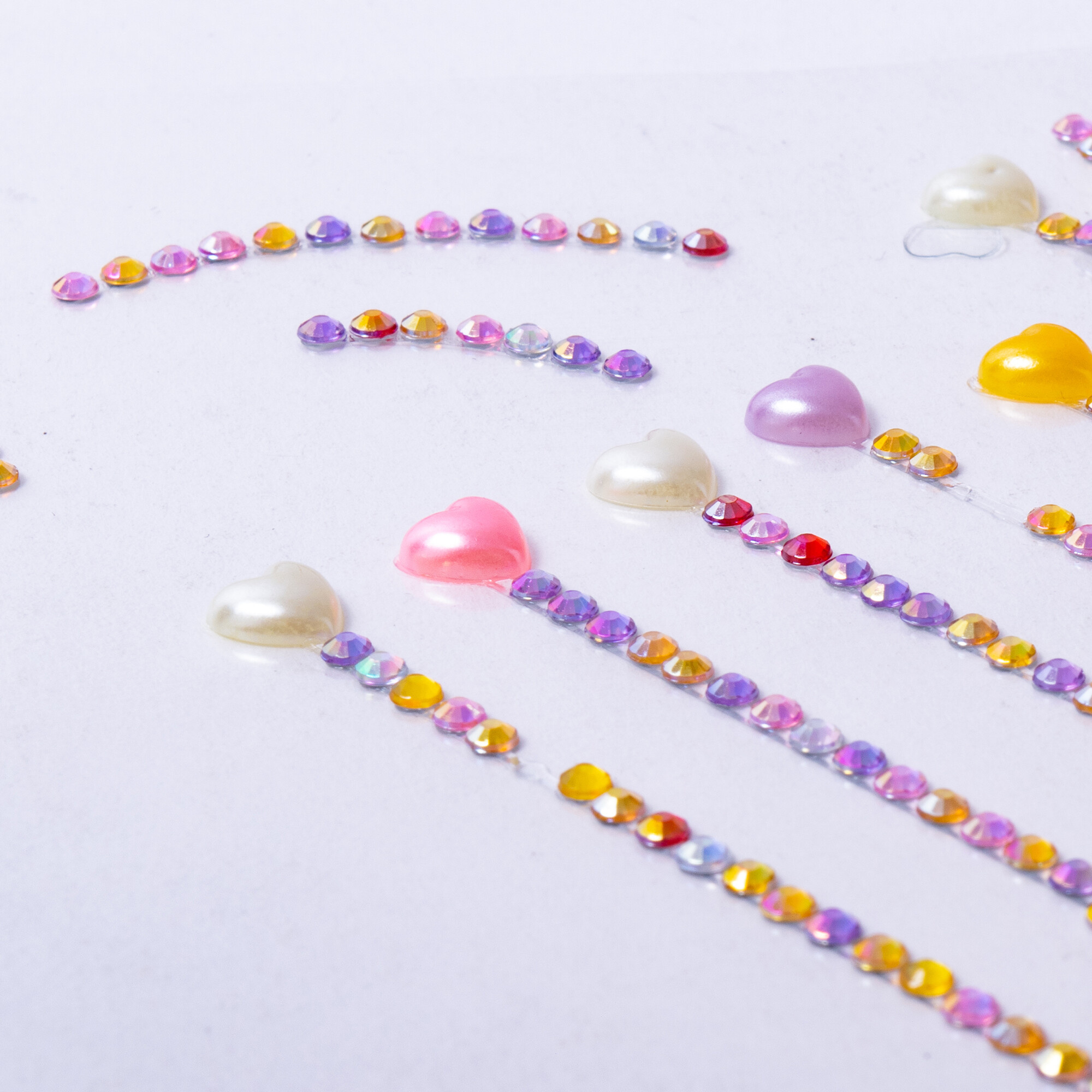 Použitie našich kamienkov je veľmi jednoduché. Stačí ich odlepiť z podkladového papiera a prilepiť na požadované miesto. Môžete ich použiť na tvár, vlasy, nechty alebo akúkoľvek inú časť tela. Kamienky pevne držia na mieste, ale zároveň ich možno ľahko odstrániť bez poškodenia pokožky alebo vlasov. Vďaka tomu môžete meniť svoj vzhľad podľa nálady a príležitosti.