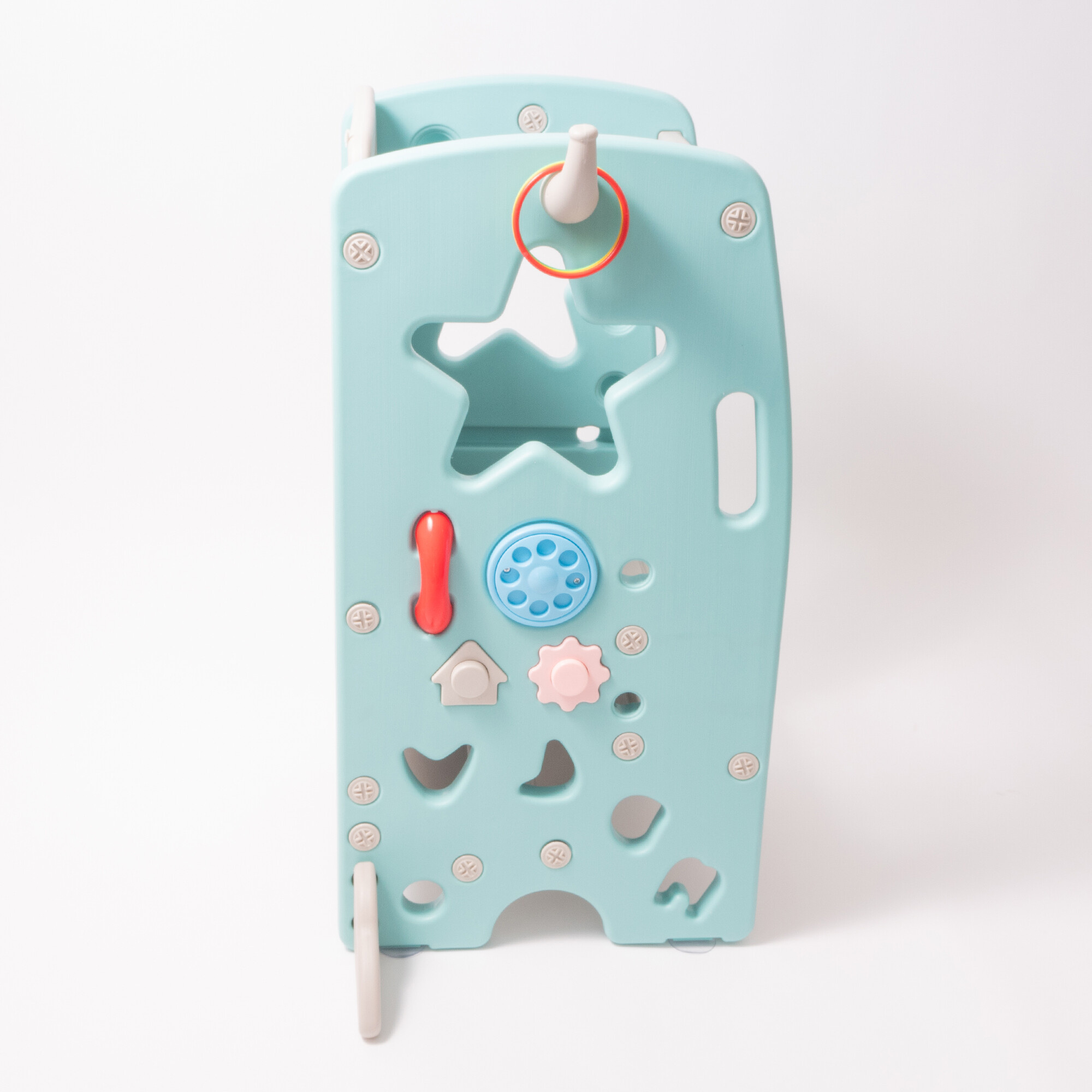 Učiaca veža je vyrobená z vysoko kvalitného HDPE plastu, ktorý je známy svojou odolnosťou a bezpečnosťou. Tento materiál je nielen ekologický, ale aj ľahko udržiavateľný, čo zaisťuje dlhú životnosť produktu.