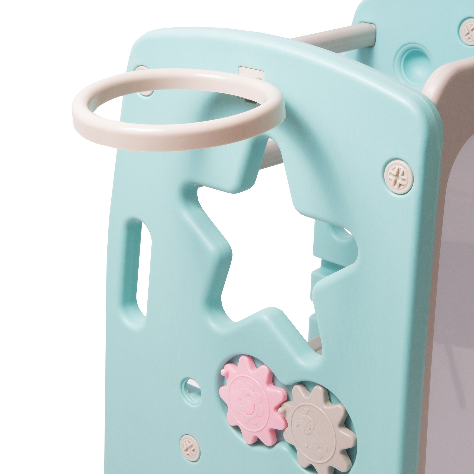 Pre malých športovcov je učebná veža vybavená basketbalovým košom a loptou. Táto funkcia prináša do detskej izby kúsok športového ihriska a umožňuje deťom rozvíjať svoje pohybové zručnosti a koordináciu.