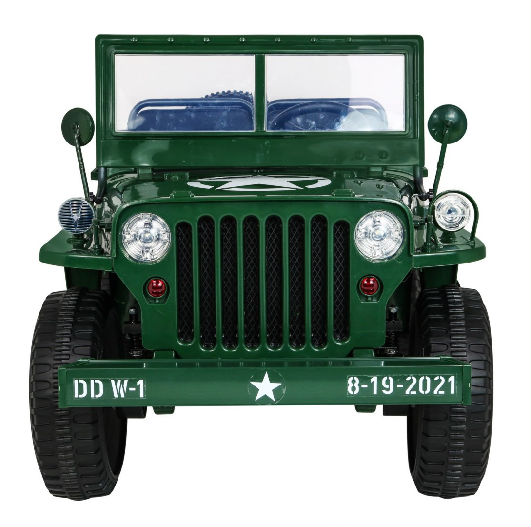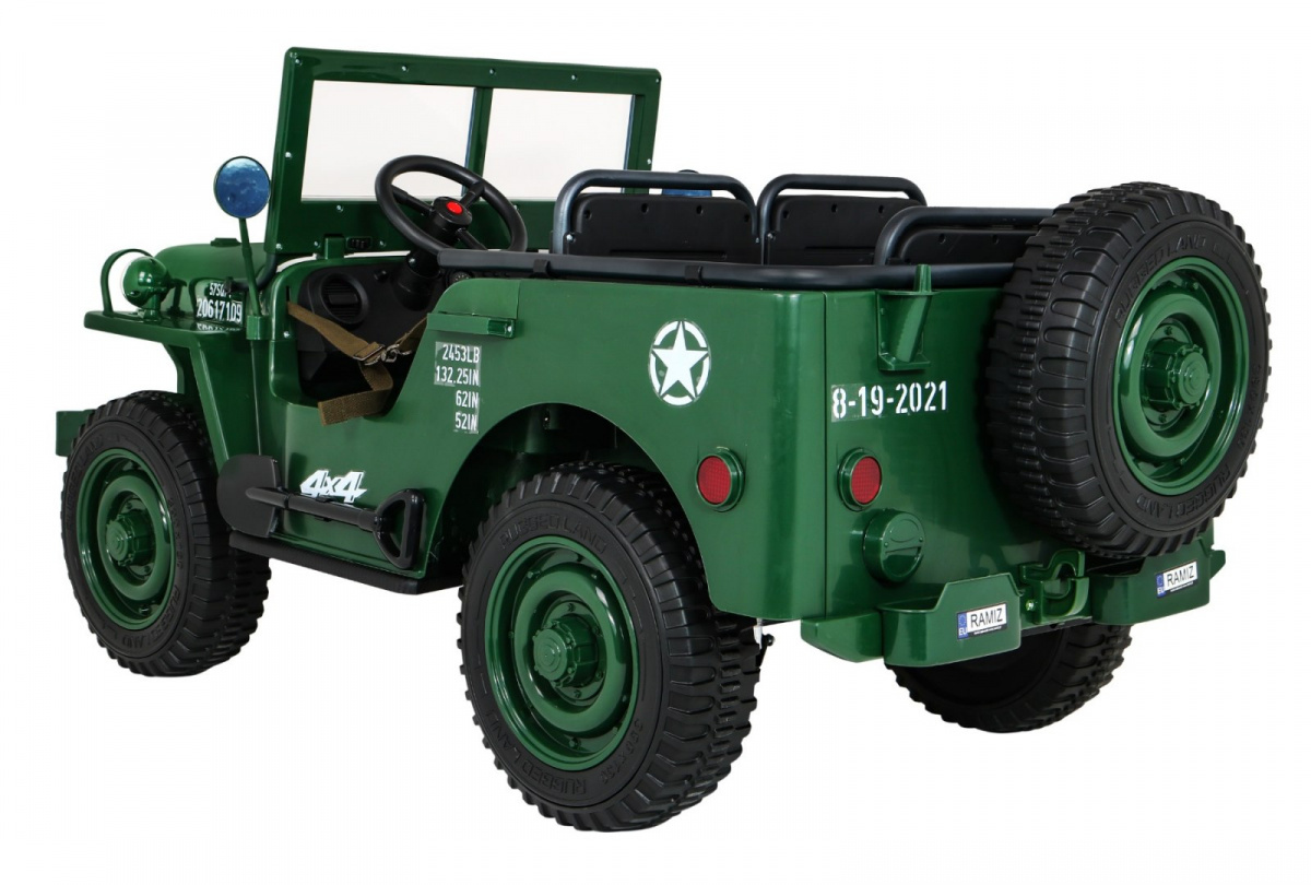 Retro vojenské auto pre 3 deti Zelené + pohon 4x4 + úložné priestory + EVA + pomalý štart + MP3 LED