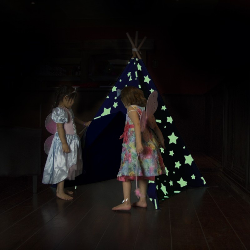 Fosforové hviezdy vytvárajú v típí nočnú oblohu, ktorú si vaše deti rýchlo zamilujú. Tento stan poskytne deťom útulný kútik na hranie.