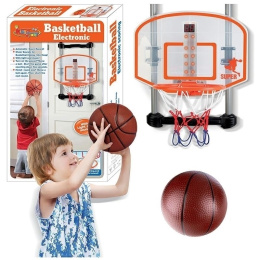 Elektroniczna tablica z koszem do gry w koszykówkę. Urządzenie liczy punkty na podstawie trafień do kosza - każda rozgrywka trwa ok. 1min - początkowo każdy celny rzut punktowany jest podwójnie, przez ostatnie 10s potrójnie. Po każdym rzucie tablica dopinguje i zachęca do dalszej zabawy. Specyfikacja: -zasilanie: 3xAAA (brak w zestawie) -elektroniczny kosz do koszykówki zliczający punkty -efekty dźwiękowe i komunikaty głosowe -możliwość zawieszenia kosza na drzwiach -regulacja wysokości: odległość obręczy kosza od górnej krawędzi drzwi 29-66cm -wymiary tablicy: 43x34cm -średnica zew. kosza: 24cm -średnica piłki ok. 14,5cm W zestawie: -kosz z elektroniczną tablicą -pompowana piłka -pompka do piłki wymiary opakowania: 36x9x59cm Ilość szt. na palecie: 88
