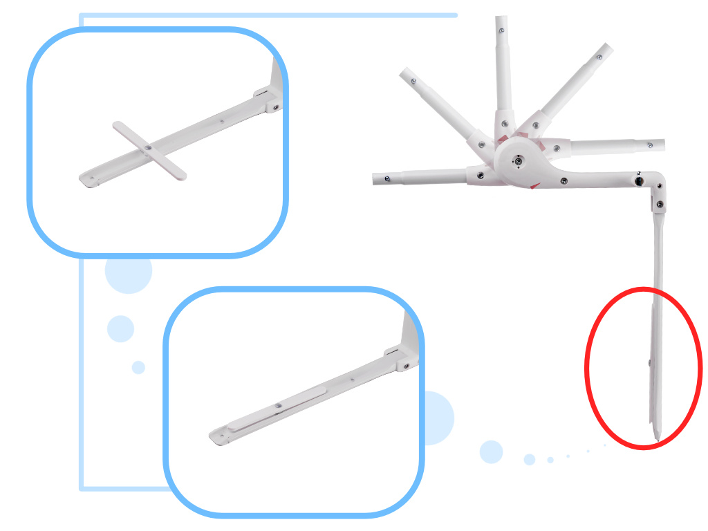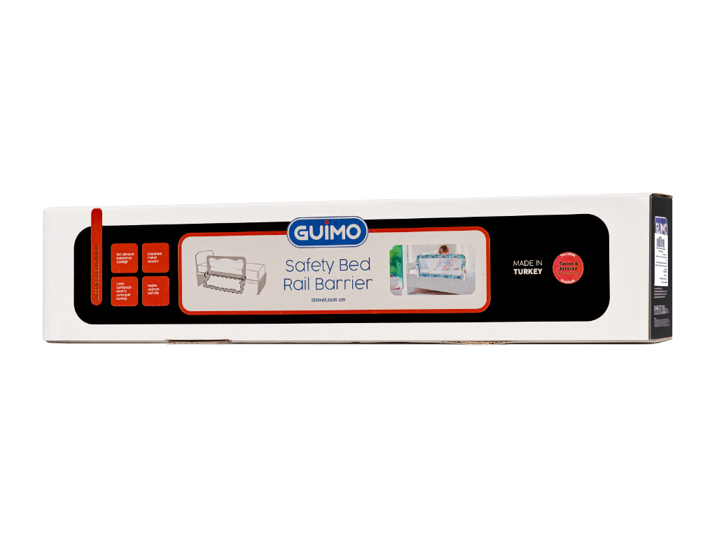 Montáž zábradlia je neuveriteľne jednoduchá! začnite montáž a vložte príslušné časti rámu do otvorov v leme sieťoviny. Potom stačí zdvihnúť matrac postele a vložiť podň vyčnievajúci podstavec zábradlia!