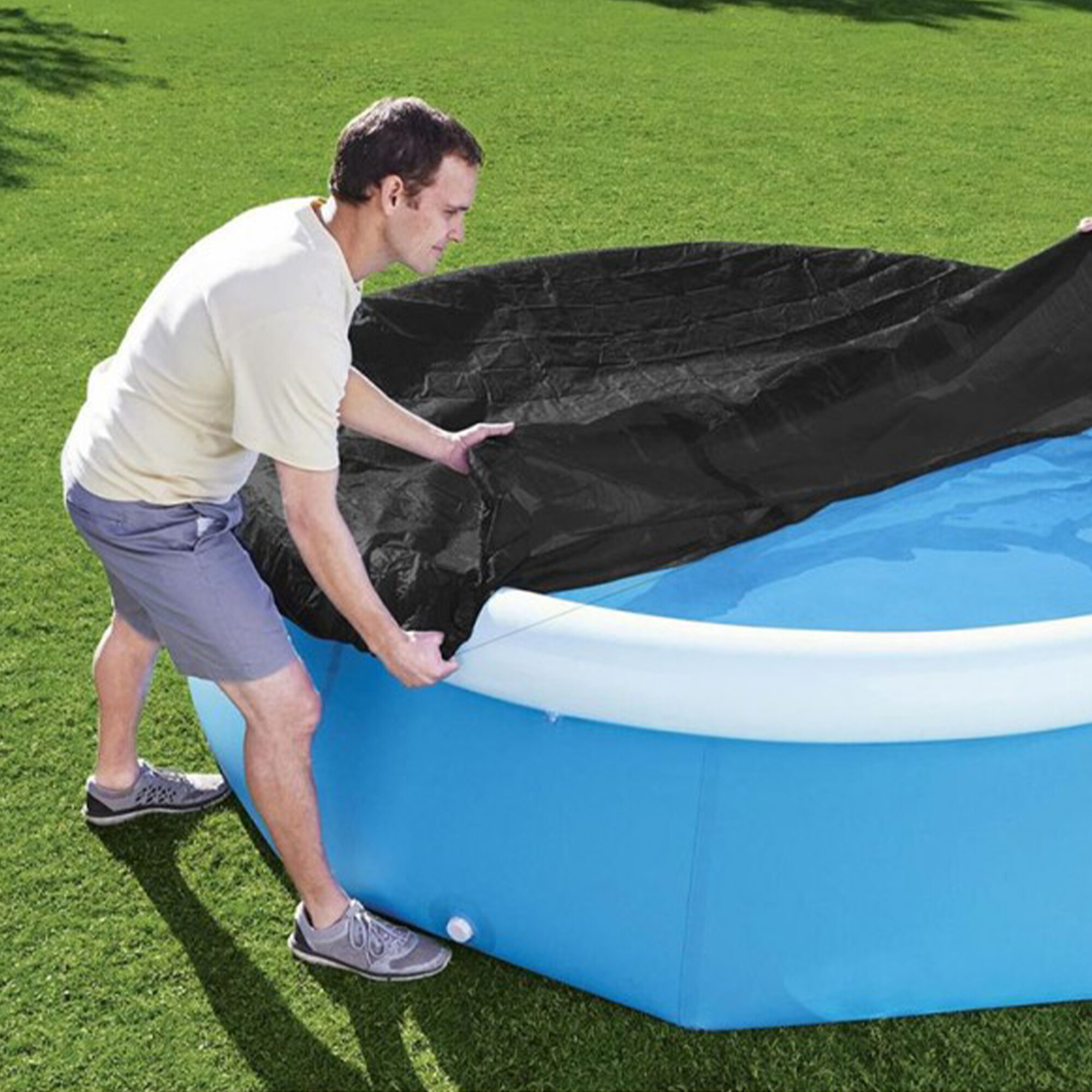 Krycia plachta na bazén Bestway s veľkosťou 244 cm poskytuje vynikajúcu ochranu pred dažďom a nečistotami, ktoré padajú do bazéna, keď sa bazén nepoužíva.