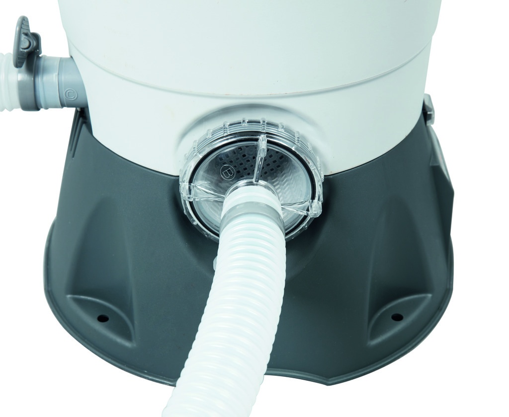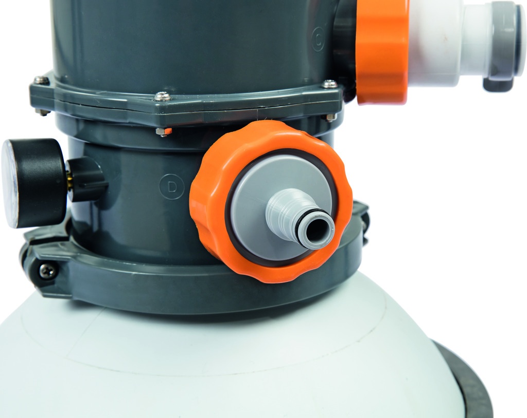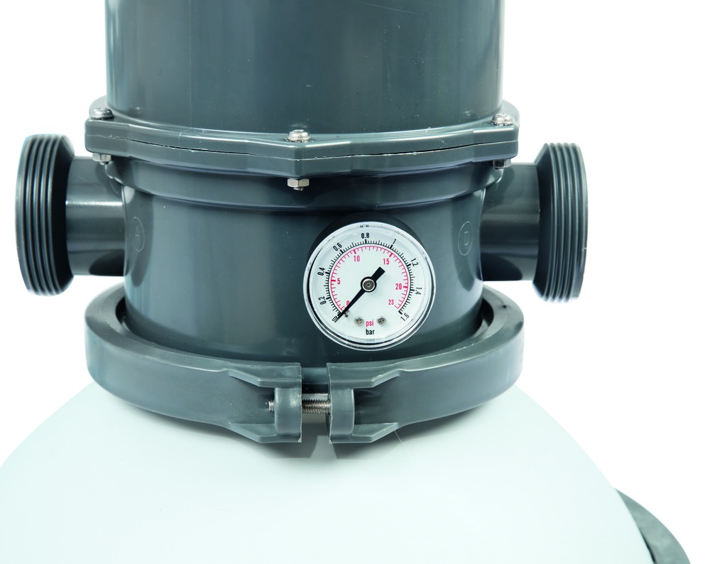 Pieskové filtračné zariadenie od firmy Bestway sa skladá z plastovej podstavy, polypropylénovej filtračnej nádoby s vrchným 6-cestným ventilom, manometra a čerpadla s predfiltrom hrubých nečistôt.
