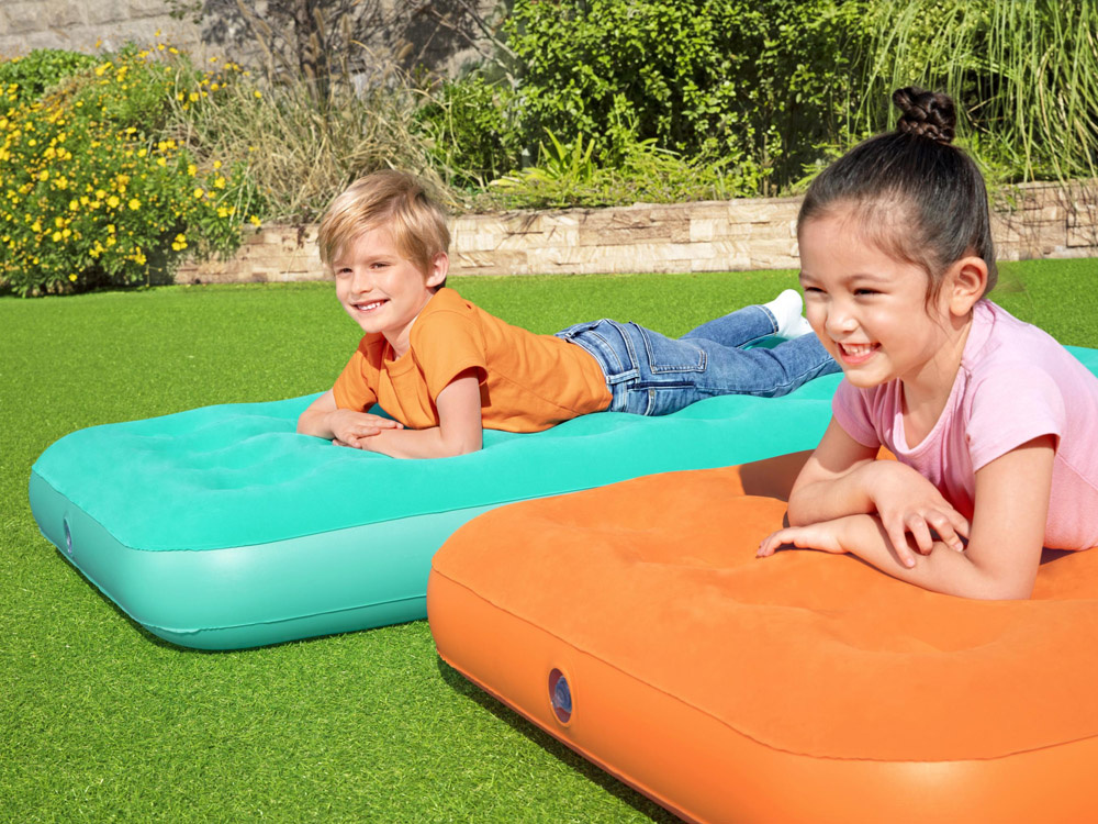 Matrac DrowsyDreamer™ od spoločnosti Bestway je určený pre najmenších cestovateľov. Dobre poslúži doma aj v stane. Povločkovaný povrch na spanie je navrhnutý pre maximálne pohodlie a umožňuje vášmu dieťaťu cítiť sa rovnako pohodlne a bezpečne ako vo vlastnej posteli.