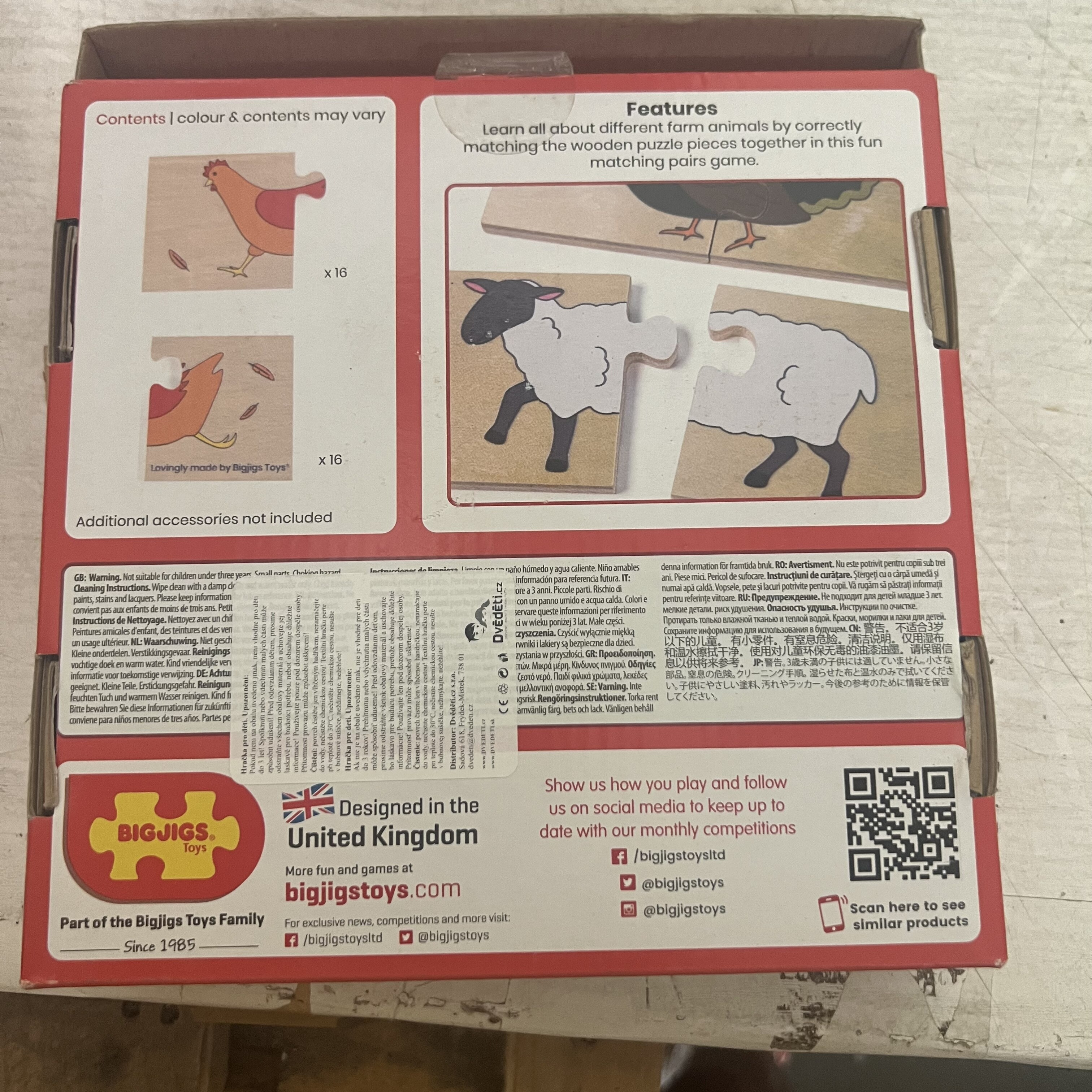 Naučte sa všetko o rôznych hospodárskych zvieratách správnym skladaním drevených dielikov puzzle v tejto zábavnej hre.Cieľom hry je priradiť k sebe správne dva dieliky.Každý hladký drevený dielik skladačky má ideálnu veľkosť pre malé ručičky, aby sa dal ľahko zdvihnúť, uchopiť, preskúmať a vymeniť.Pomáha rozvíjať koordináciu pohybu, skladanie zvierat.Je to tiež skvelá príležitosť naučiť deti všetko o zvieratách.Vyrobené z vysoko kvalitných, zodpovedne získaných materiálov.Spĺňa aktuálne európske bezpečnostné normy. Vyrobené z vysoko kvalitných, zodpovedne získaných materiálov.