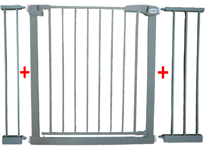 Rozmery: výška: 78 cm, šírka bránky s rozšíreniami (bez skrutiek) - 102 cm montážny otvor: 79-115 cm montážny otvor s rozšíreniami: 110-115 cm minimálna šírka montážneho otvoru (bránka so skrutkami) - 79 cm, minimálna šírka montážneho otvoru (bránka so skrutkami) s rozšíreniami - 110 cm, maximálna šírka montážneho otvoru (bránka so skrutkami) - 115 cm šírka rozširujúcich prvkov: 10,5 cm a 20,5 cm (dva prvky) počet rozširujúcich prvkov: 2 výška dverí: 71,5 cm, šírka dverí: cca. 58 cm, 4 montážne skrutky so silikónovými krytkami, hmotnosť: 5,5/6 kg, Vďaka možnosti rozšírenia a montážnemu systému možno bránku prispôsobiť priechodom o rozmeroch od 79 cm do 115 cm. Rozšírenie môžeš namontovať na ľubovoľnú stranu. Môžeš namontovať jedno rozšírenie alebo nemontovať žiadne.