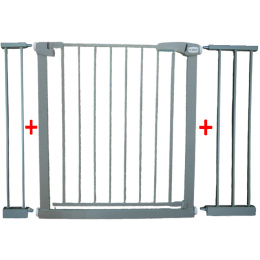 Špecifikácia: bránka vyrobená z kovu, práškovo lakovaná, značka R-sport, nastaviteľná šírka umožňujúca montáž v rôznych otvoroch, upevnenie rozpínacím spôsobom - jednoduchá montáž spočívajúca v zašróbovaní a nastavení rozpínacích šróbov, otváranie na obe strany, ľahké automatické zatváranie, dvojitá blokácia otvárania - dodatočné zabezpečenie pri otvorení (je potrebné stlačiť tlačidlo v zámku a navyše ľahko zdvihnúť dvere), účinne blokuje prístup k nebezpečným miestam, obsahuje 2 rozšírenia Sada obsahuje bránku s dverami a zámkom, 2 rozšírenia, 2 kovové predlžovacie prvky a 4 šróby s plastovými maticami a silikónovými krytkami.