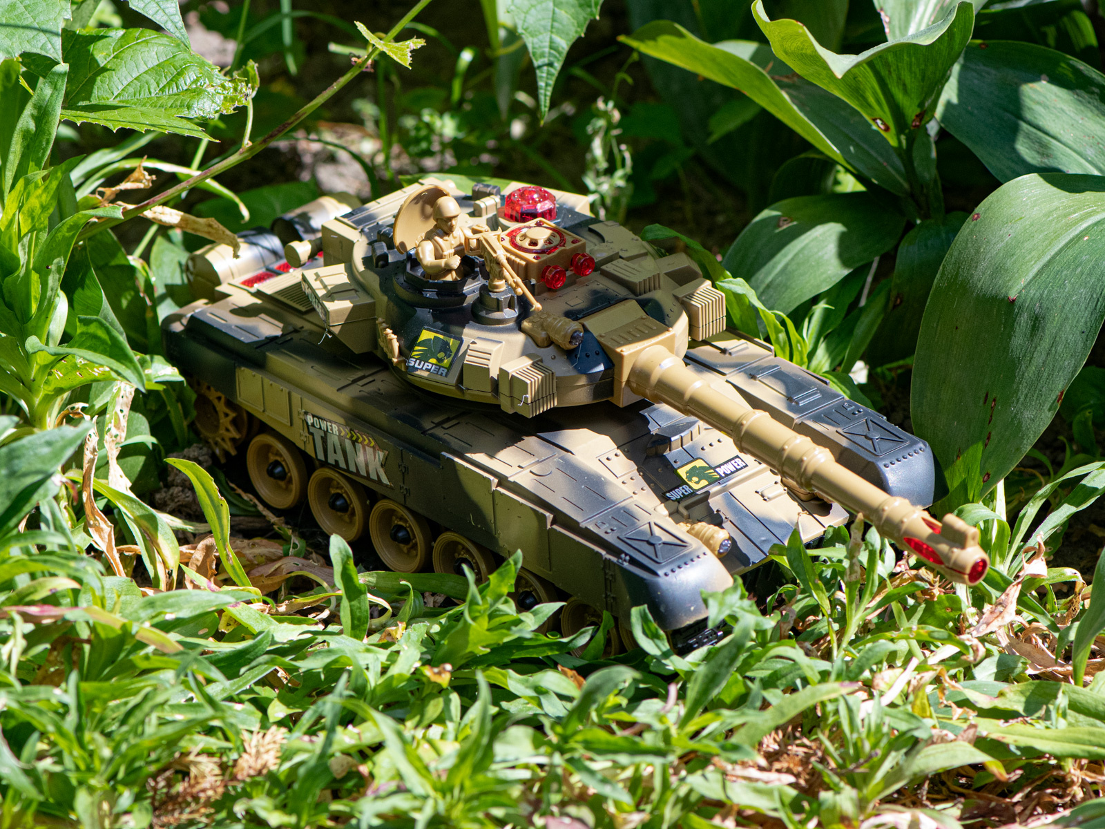 Vojenský tank na diaľkové ovládanie je zárukou nezabudnuteľnej, mnohohodinovej zábavy pre každé batoľa.