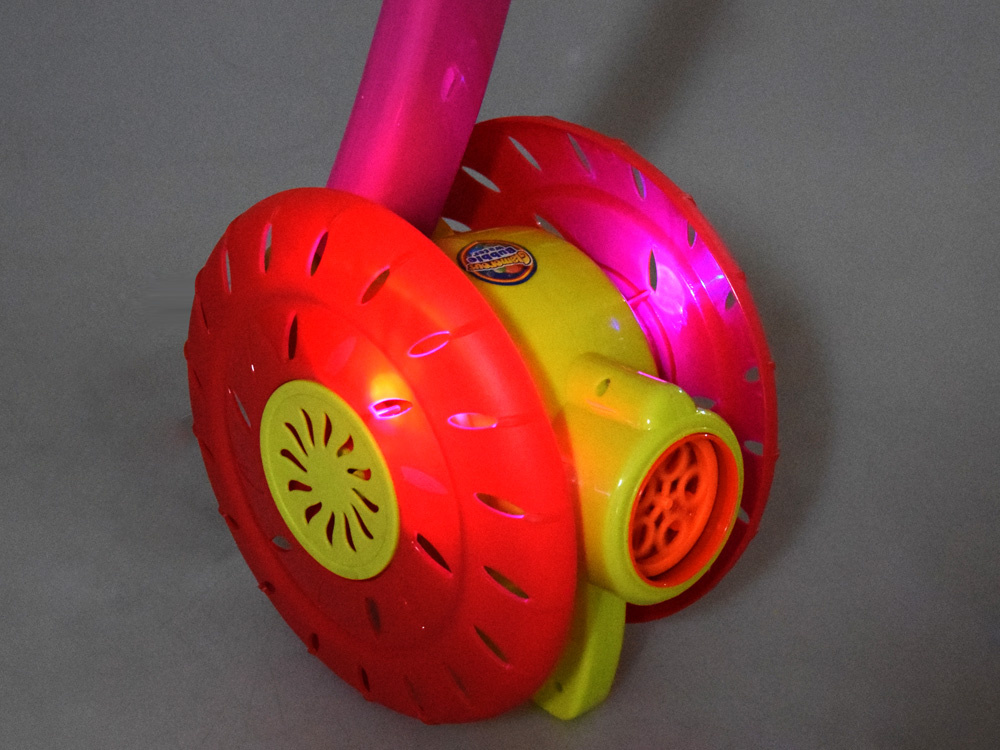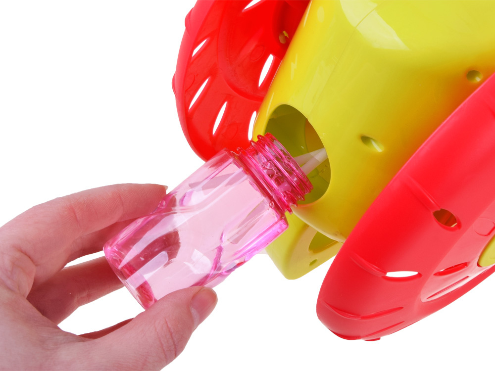 Mydlové bubliny sú obľúbenou zábavou malých aj veľkých detí.Senzačný výrobník mydlových bublín v tvare fúkačky, navijak , určite poskytne veľa zábavy každému dieťaťu.Hračka umožňuje vypúšťať farebné bubliny zo strojčeka. Stačí naskrutkovať fľašu s tekutinou na dno bubna, zapnúť tlačidlo na rukoväti tlakového mlyna, čím sa aktivuje veterný mlyn a rotujúci disk, ktorý pri otáčaní uvoľňuje čarovné dúhové bubliny. To však nie je všetko, zatiaľ čo hrá veselá melódia a blikajú farebné svetlá.