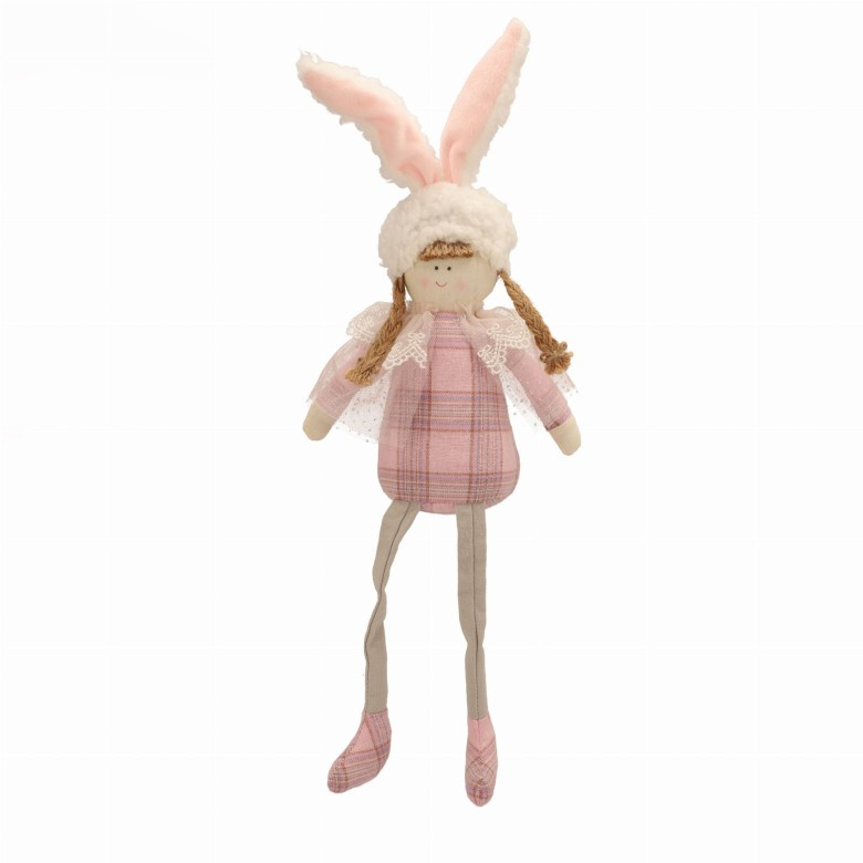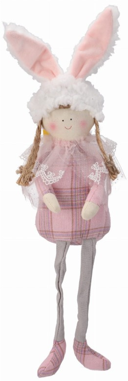 Vyrobená z vysoko kvalitných materiálov, táto dekorácia zobrazuje dievčatko v roztomilom oblečení s dlhými zajačími ušami, čo jej dodáva jedinečný, radostný charakter. Je dokonalá ako ozdoba na stôl, jarné aranžmán alebo ako dekoratívny prvok v rôznych častiach domu. Sediaca postava zabezpečuje, že ozdoba je stabilná a ľahko umiestniteľná na ľubovoľné miesto. Ideálna voľba na Veľkú noc, ktorá prinesie do domu radostnú, sviatočnú atmosféru!