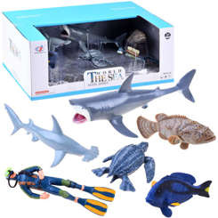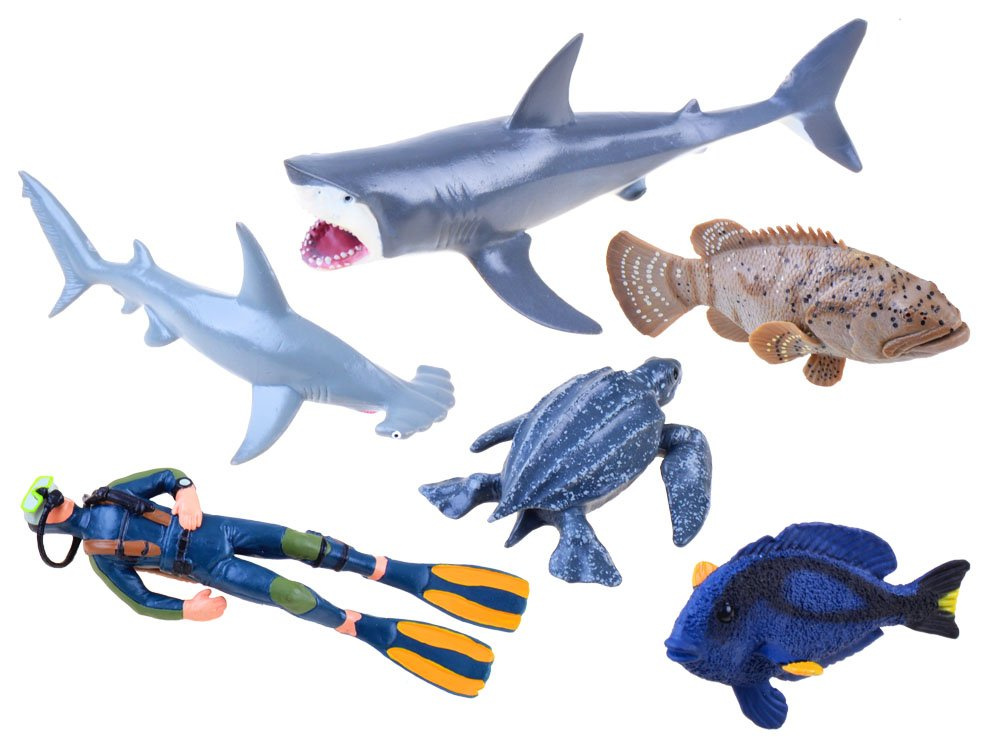 Táto fantastická sada morských tvorov poteší každého zberateľa so záujmom o podmorský svet. Figúrky reprodukujú populárne ryby, morské cicavce. Súčasťou je aj potápač so všetkým vybavením potápača. Figúrky sú vyrobené z plastu vo farbách, vzoroch a detailoch zodpovedajúcich druhu.