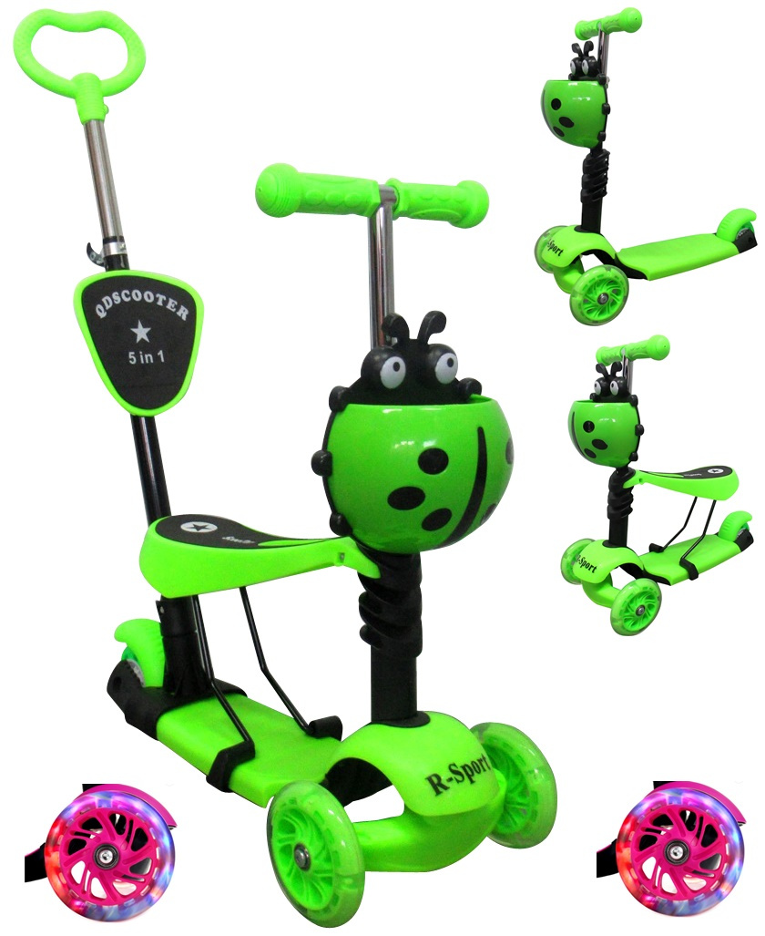 R-Sport Detská trojkolová kolobežka H3 Zelená 5v1 s LED kolieskami