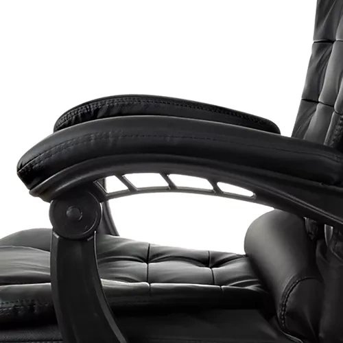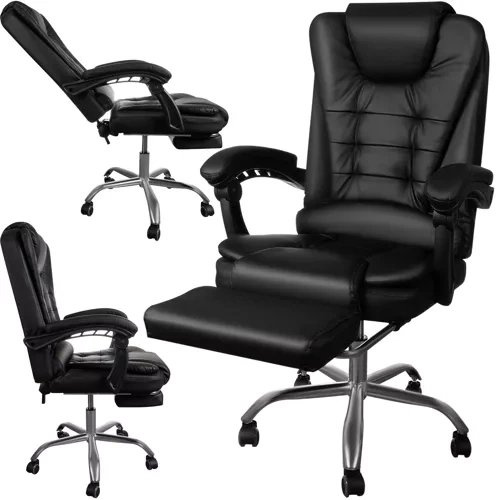 - ŠPECIFIKÁCIA – farba materiálu: čierna; materiál: poťah: ekokoža, výplň: pena, štruktúra: drevo, podrúčky: ekokoža + PP, montážny držiak, nastavovací mechanizmus: železo, základňa, zdvih: chrómová oceľ, kolieska: PU guma; mechanizmus: páka (motýľ); maximálne zaťaženie: do 130 kg; priemer čapu 2cm; podnožka: 38 x 22 cm; sedák: 51 x 46 cm; operadlo: 66,5 x 50 cm; rozmery: 102 - 110 cm; hmotnosť kresla: 16 kg; hmotnosť s obalom: 17,8 kg.