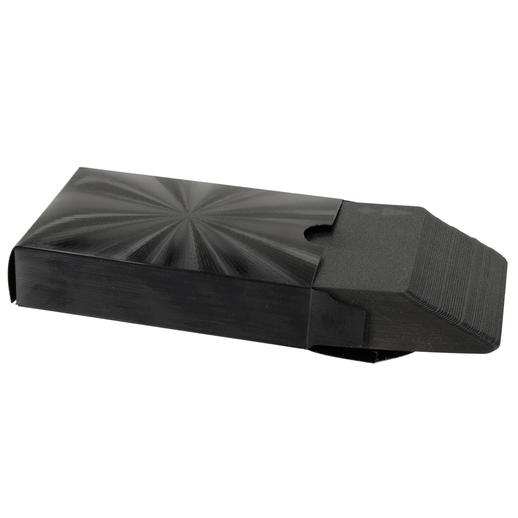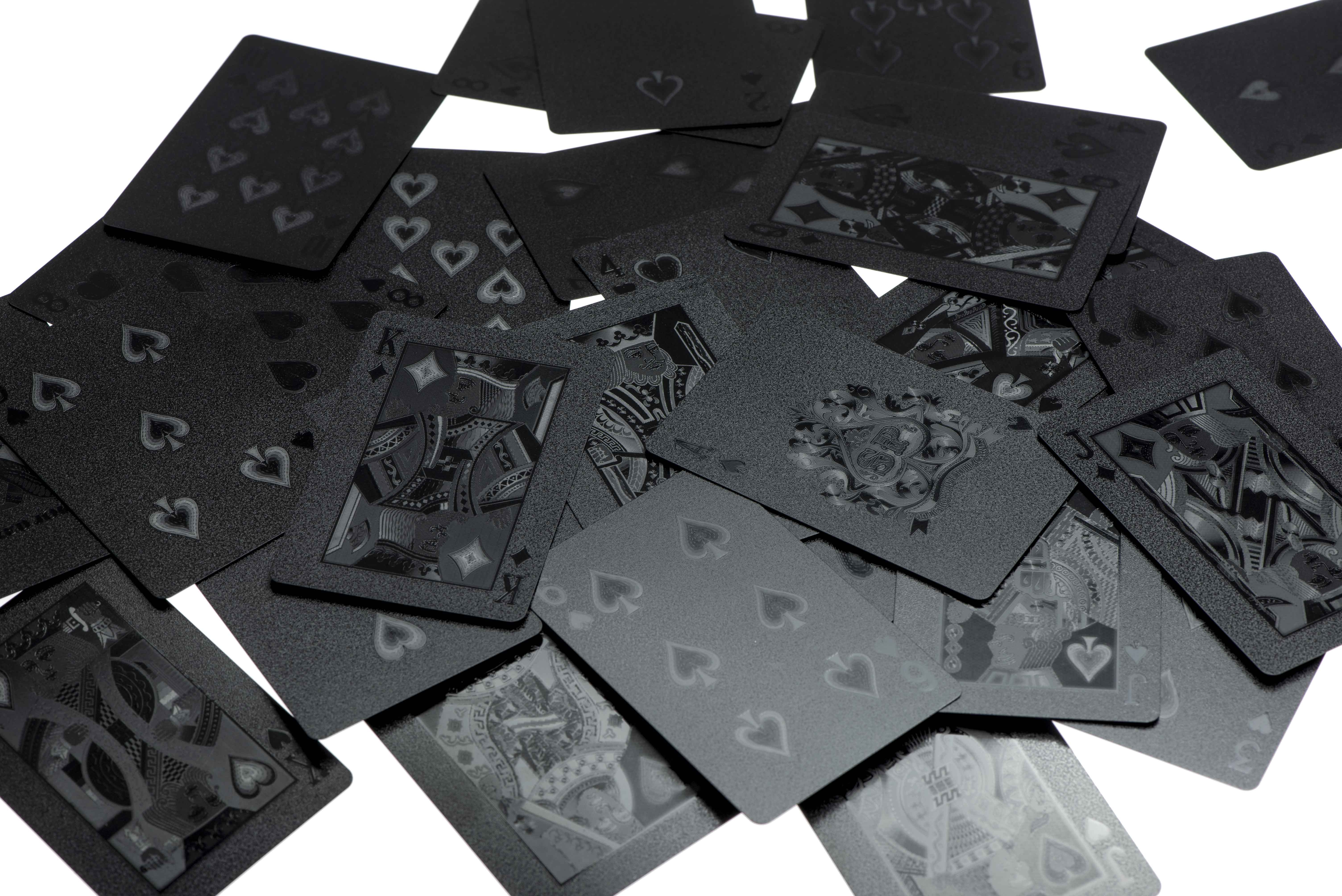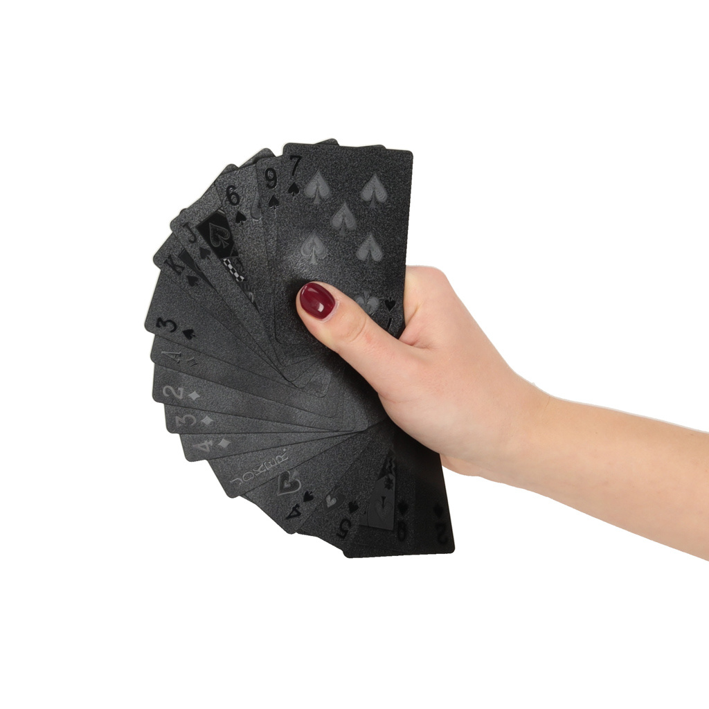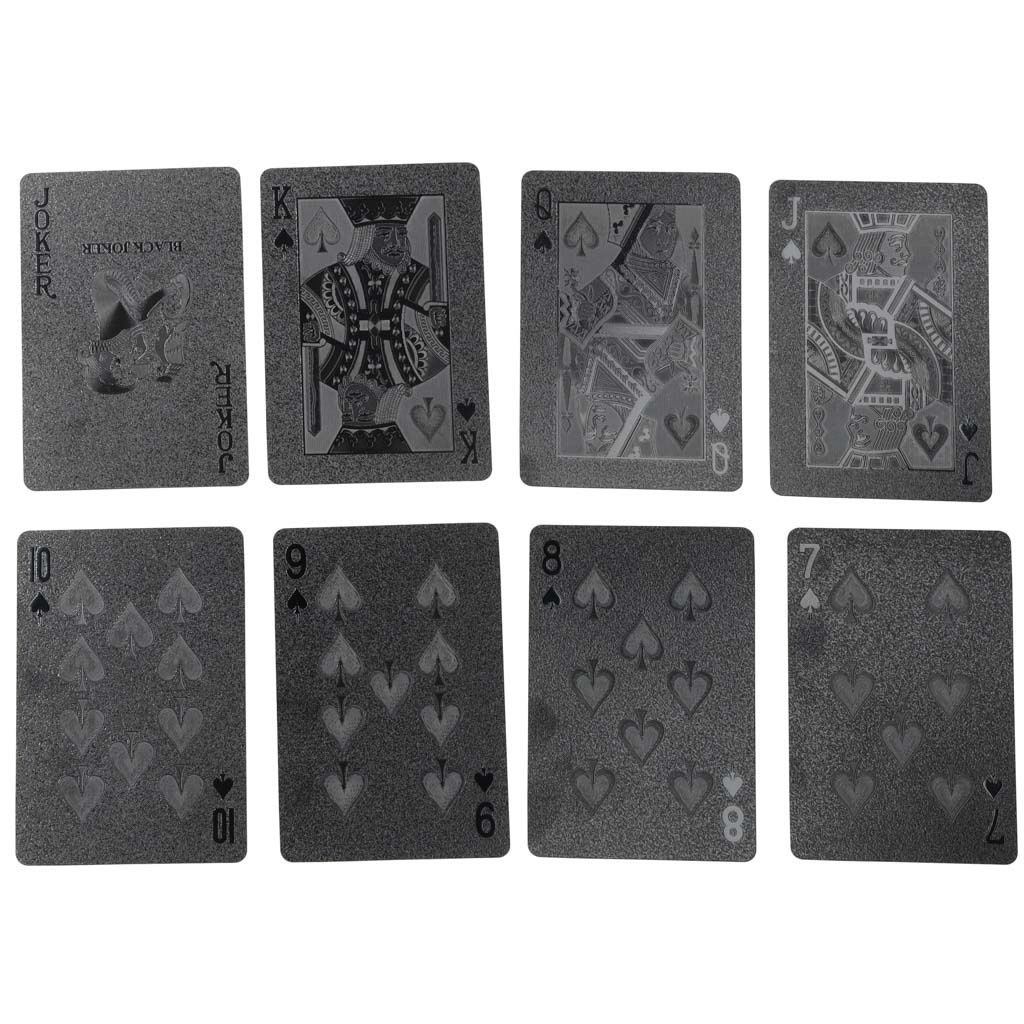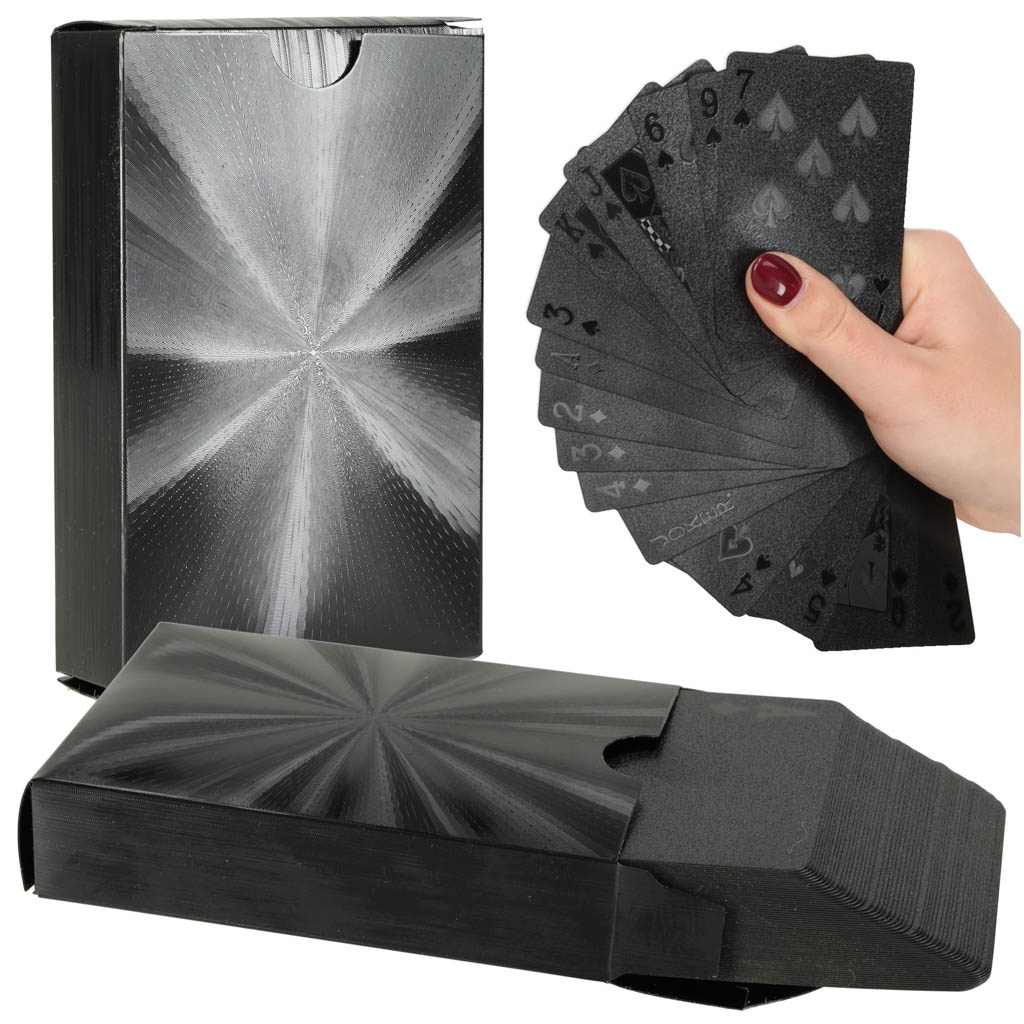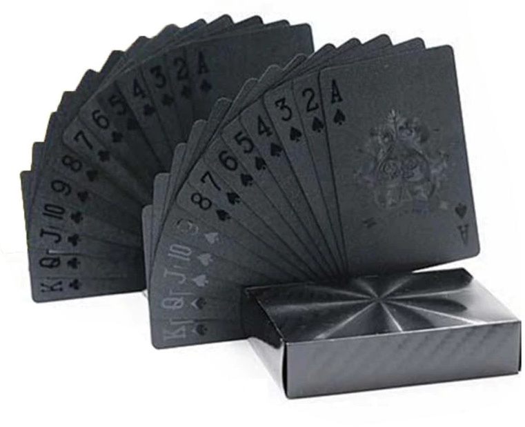Pre všetkých hráčov s kartami je dôležité, aby sa súper nepozeral na karty, a tieto karty pomôžu aj s týmto kritériom. Luxusné čierne hracie karty 54 ks sú veľmi elegantné a priťahujú pozornosť svojím neobvyklým vzhľadom. Sú tiež vynikajúce z hľadiska odolnosti, pretože sú vyrobené z plastu, a preto sa ľahko neodlúpnu a nespôsobia celkové poškodenie. Najmä pri hrách v krčme neustále hrozí riziko vysypania hracích kariet, ale tieto karty sú voči všetkým takýmto nehodám odolné. Materiál: plast, potiahnutý špeciálnou fóliou