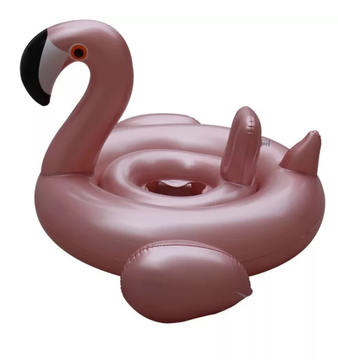 Ružový nafukovací bicykel v tvare plameniaka pre deti so sedadlom, vyrobené z vysokokvalitného plastu PVC, zaručuje trvanlivosť.