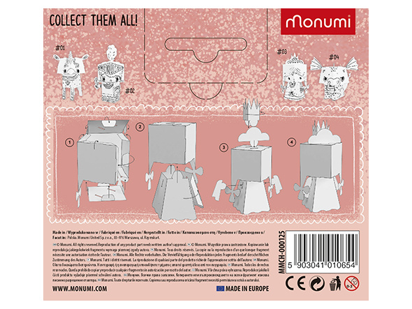MONUMI je poľská značka vytvorená tímom ľudí, pre ktorých je práca vášňou a detská radosť hlavnou odmenou za kreatívne vytváranie hračiek, ktoré zabávajú a učia. Starostlivý výber skupiny odborníkov, ktorí materiály vyvíjajú, a to z obsahového aj umeleckého hľadiska, má za cieľ zabezpečiť, aby naše výrobky účinne ovplyvňovali duševný rozvoj detí. MONUMI vytvára jedinečné papierové kreatívne sady a omaľovánky pre rôzne skupiny čitateľov s ohľadom na ich estetické a intelektuálne potreby.