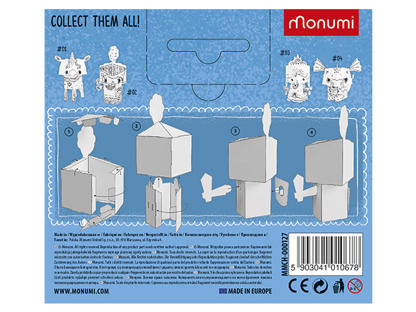 MONUMI je poľská značka vytvorená tímom ľudí, pre ktorých je práca vášňou a detská radosť hlavnou odmenou za kreatívne vytváranie hračiek, ktoré zabávajú a učia. Starostlivý výber skupiny odborníkov, ktorí materiály vyvíjajú, a to z obsahového aj umeleckého hľadiska, má za cieľ zabezpečiť, aby naše výrobky účinne ovplyvňovali duševný rozvoj detí. MONUMI vytvára jedinečné papierové kreatívne sady a omaľovánky pre rôzne skupiny čitateľov s ohľadom na ich estetické a intelektuálne potreby.
