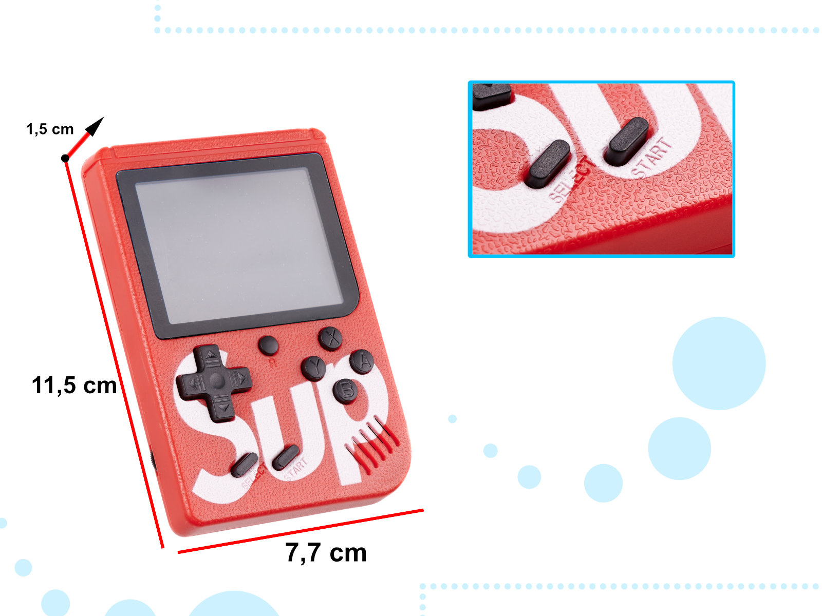 Fantastická herná konzola. Obrovský výber hier poteší každého používateľa. Je ideálny na cestovanie. Farba: červená. Súčasťou balenia je konzola, batéria, USB a AV kábel. Rozmery hry: 11,5x7,7x1,5 cm.Úplný popis