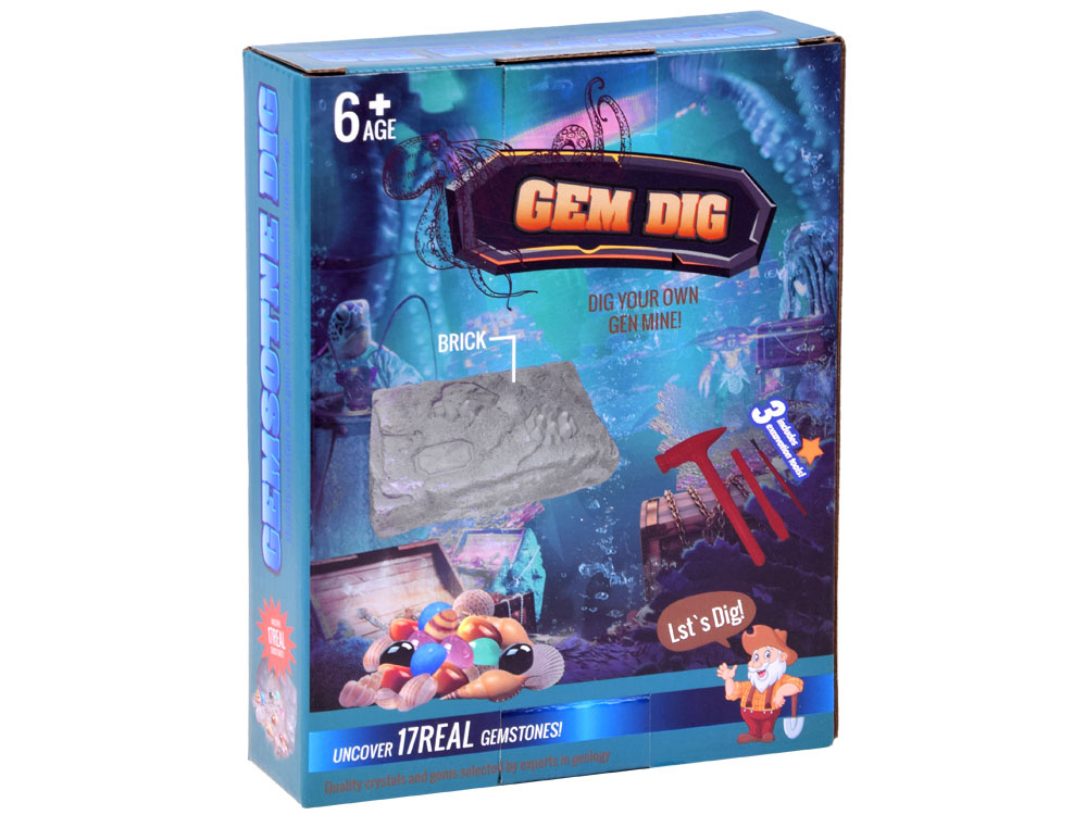 Vzdelávacia sada pre malých archeológov a hľadačov pokladov. Sada na kopanie kameňov je skvelá pre všetkých malých objaviteľov a bádateľov. Hračka pre domácich majstrov, ktorá simuluje archeologické vykopávky v novej, jedinečnej a atraktívnej podobe. Úlohou bádateľa je pomocou kladiva, dláta a štetca získať kryštály, diamanty a kamene ukryté v sadrovom odliatku.