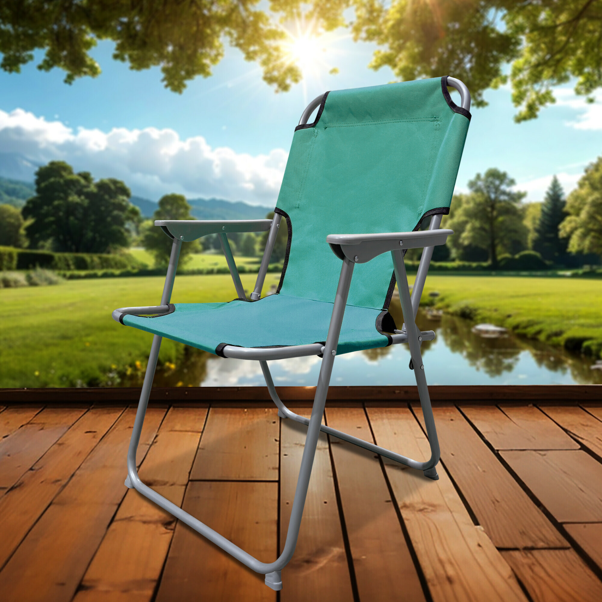 Skladacia záhradná stolička s pohodlnými podrúčkami, ideálna na kempovanie, ale svoje využitie nájde aju rybárov, modelárov, chalupárov a chatárov.