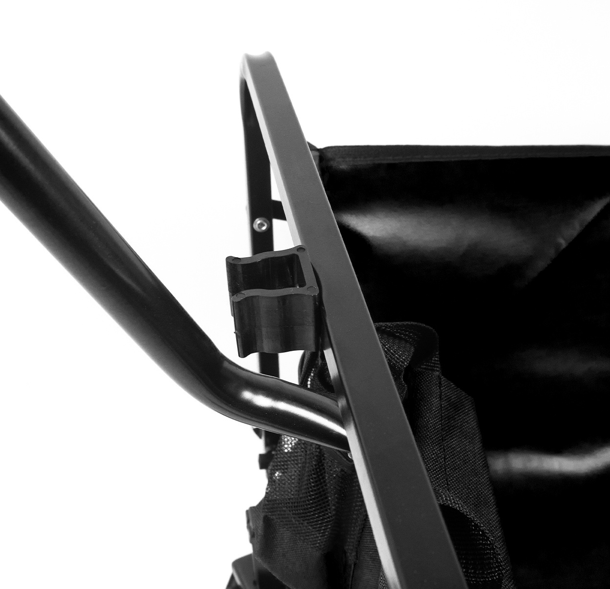 Vozík sa dá ľahko premiestňovať pomocou tyče na prednej strane. Na prednej strane vozíka nájdete aj dve sieťované vrecká na uloženie menších predmetov.