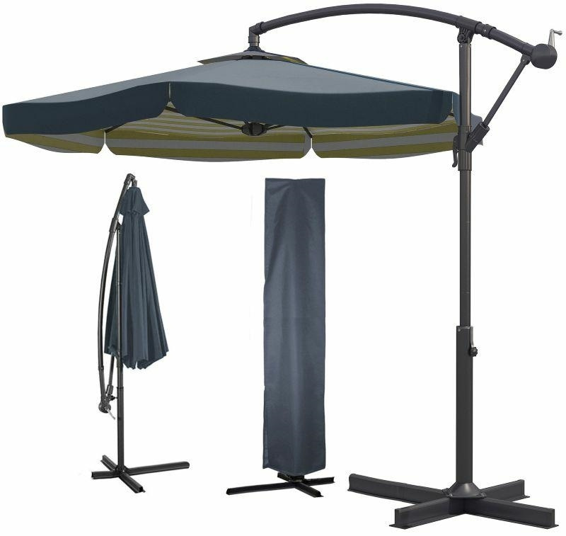 Parasol na wysięgniku wykonany z odpornego na warunki atmosferyczne poliestru. Materiał jakości premium doskonale chroni przed działaniem promieni słonecznych. Wyposażony w mechanizm korbowy. Szybkie składanie/rozkładanie parasola. Parasol należy obciążyć lub przykręcić do podłoża, w przciwnym razie istnieje ryzyko uszkodzenia parasola przez działanie wiatru. Gwarancja nie obejmuje uszkodzeń powstałych na skutek działania porywistego wiatru. Marka: Carruzzo Specyfikacja techniczna: - materiał poszycia: 100% poliester 160g/m2 - kolor szary - wymiary: wysokość 245cm, śr. czaszy: ok. 3m, śr. po materiale: ok. 3,5m - stelaż ze stali, średnica rurek: 48/54mm - łatwy w przechowywaniu - regulowany pochył czaszy - wysokość wejścia: 195cm - pokrowiec w zestawie - wymiary podstawy: 100x100cm - wys. po złożeniu: 2,3m Wodoodporność średnia: 10-30min w zależności od natężenia deszczu. W zestawie: - parasol z podstawą - pokrowiec Wymiary kartonu: 185x30x14,5cm Ilość szt. na palecie: 20