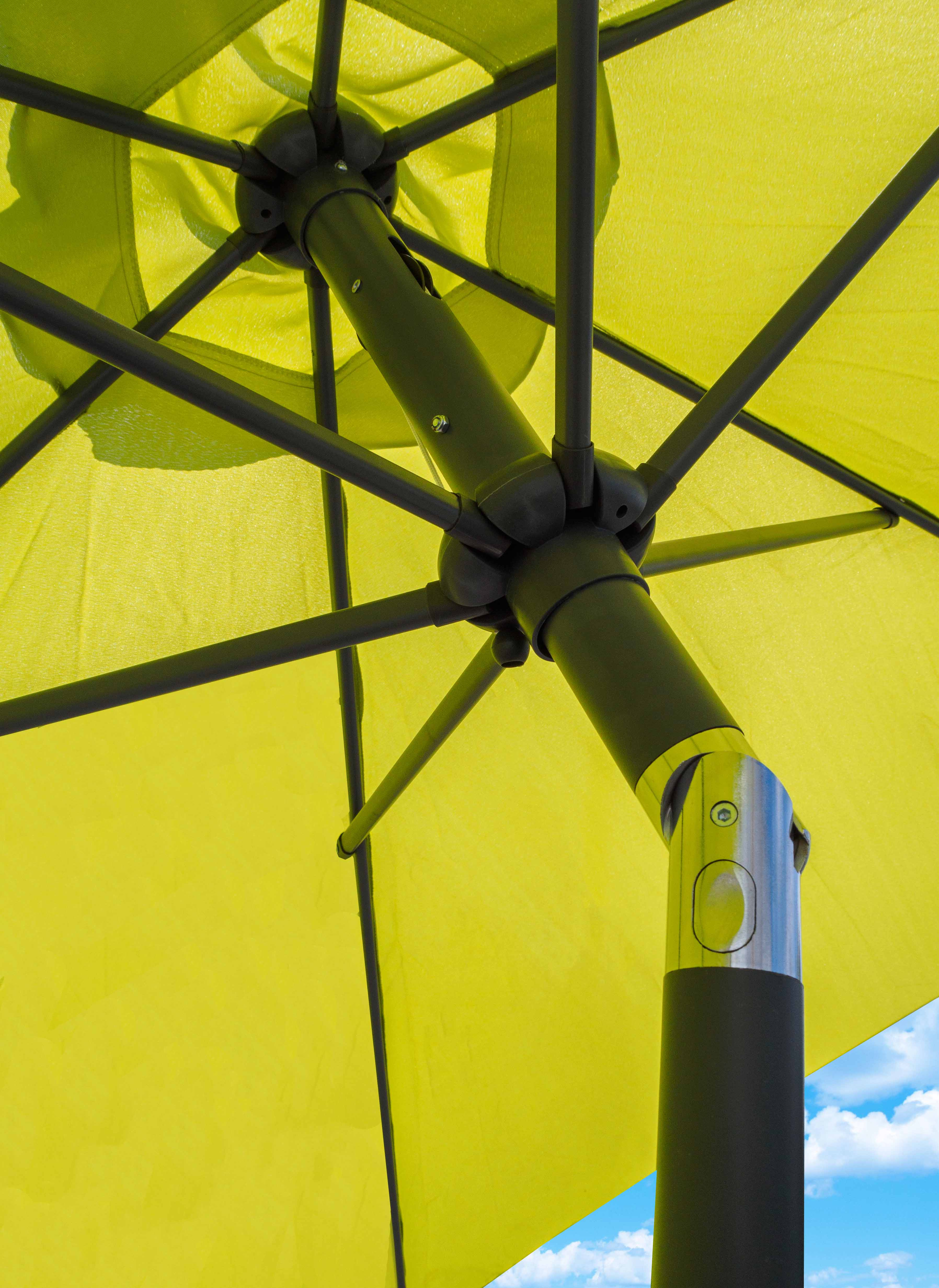 Jednoduchý kľukový mechanizmus zabezpečuje jednoduchú manipuláciu pri rozkladaní a skladaní slnečníka.