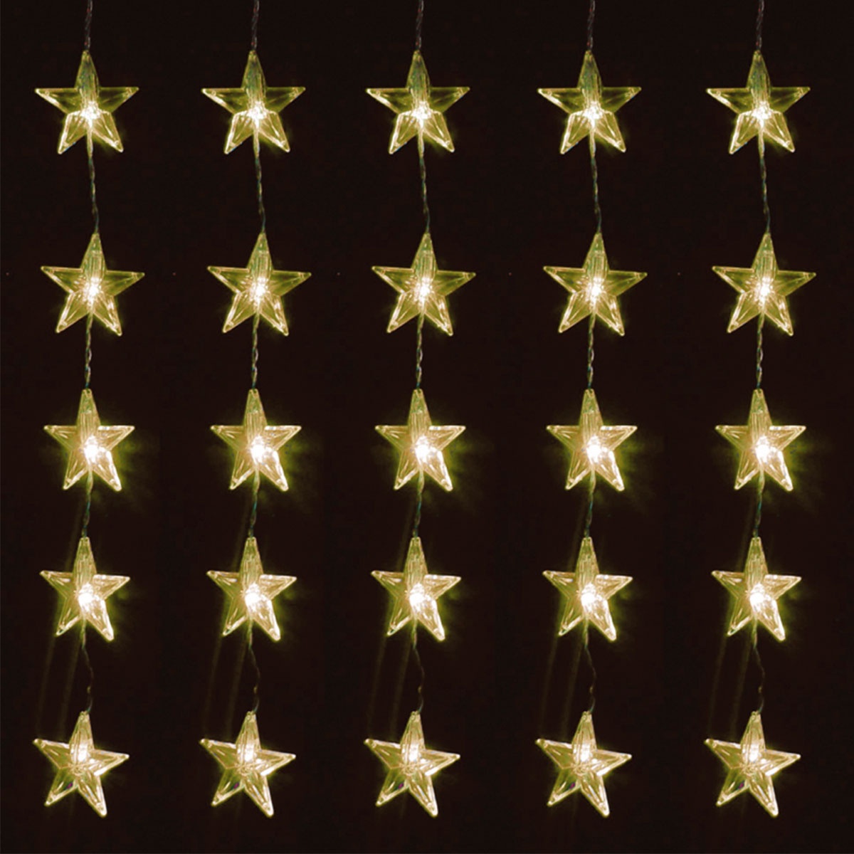 Reťaz LED sa skladá z hviezdičiek, ktoré svietia teplou bielou farbou.