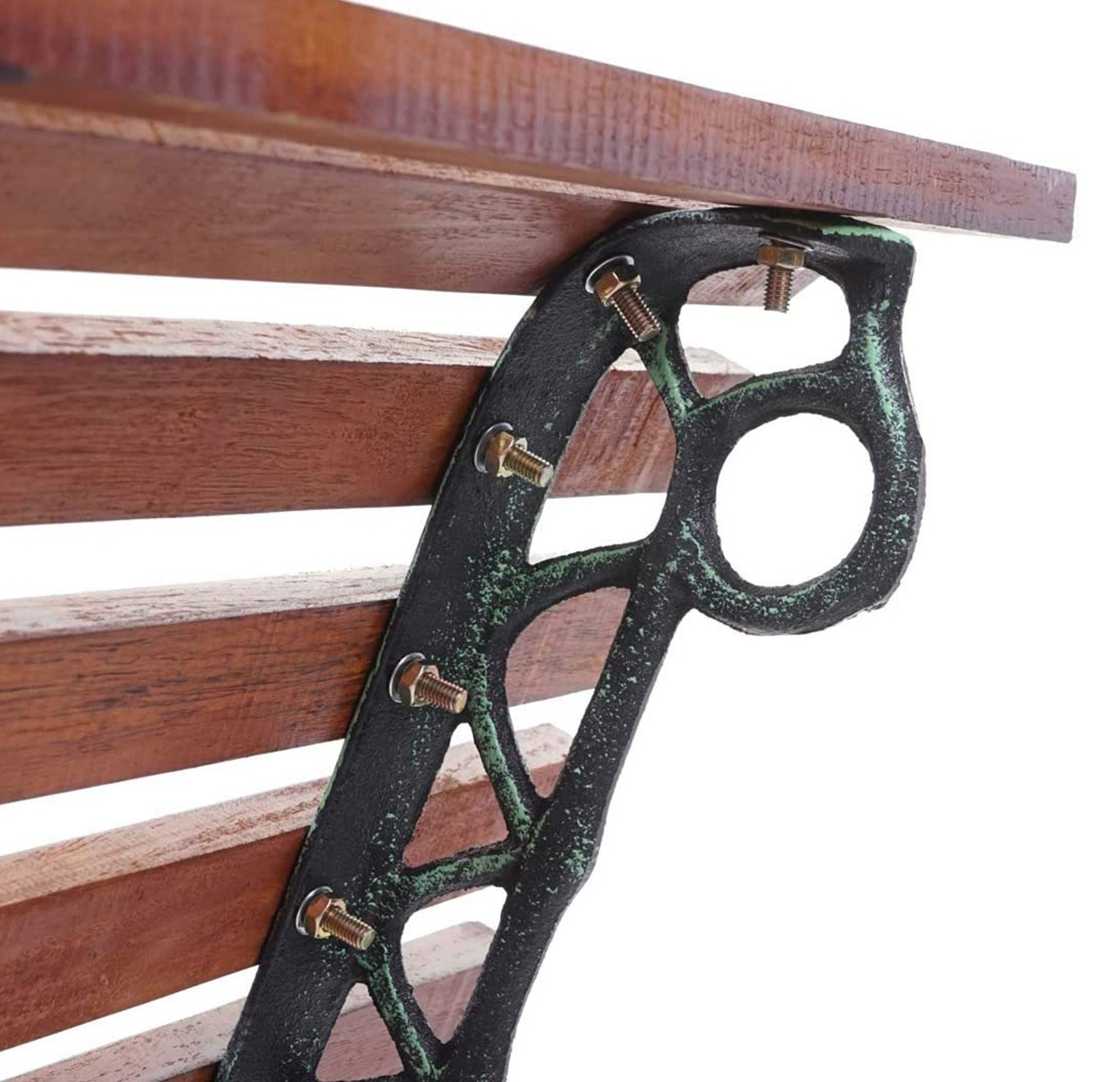 Pevná liatinová konštrukcia doplnená drevenými lamelami. Nosnosť lavičky 240 kg.