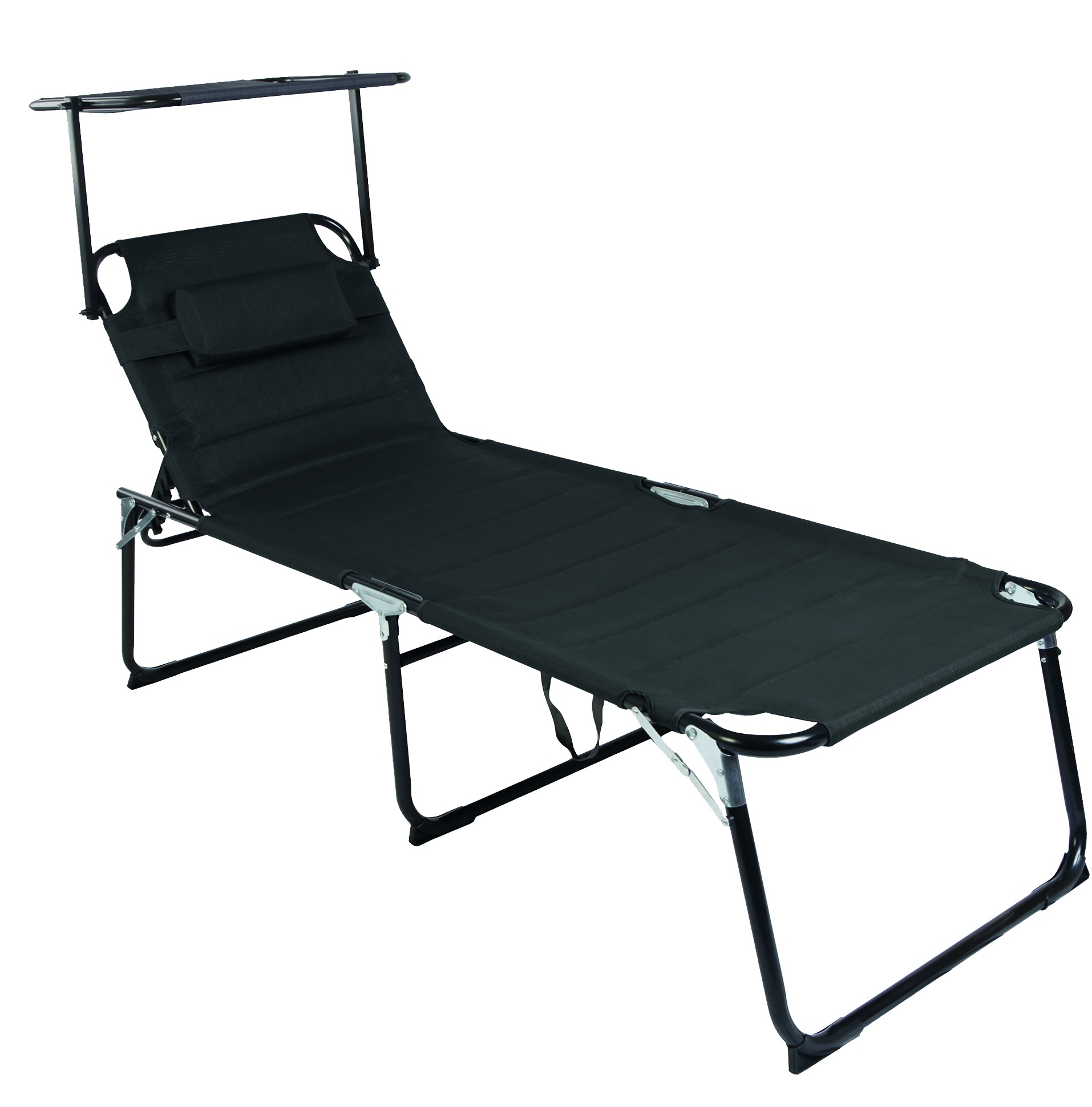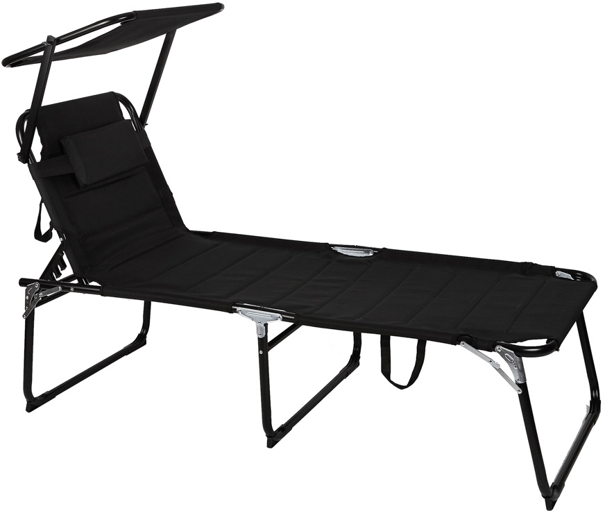 Skladacie záhradné lehátko so strieškou a s polstrovaním a spevnenou hliníkovou konštrukciou, v modernom dizajne, vhodné pre záhrady, na kempovanie či pláže.