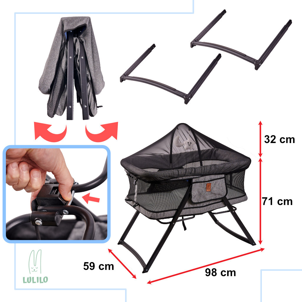 Snímateľný materiál - materiál kolísky je na zips a možno ho zložiť a vyprať, ak sa postieľka zašpiní.