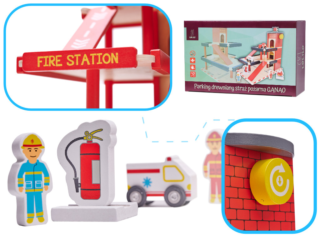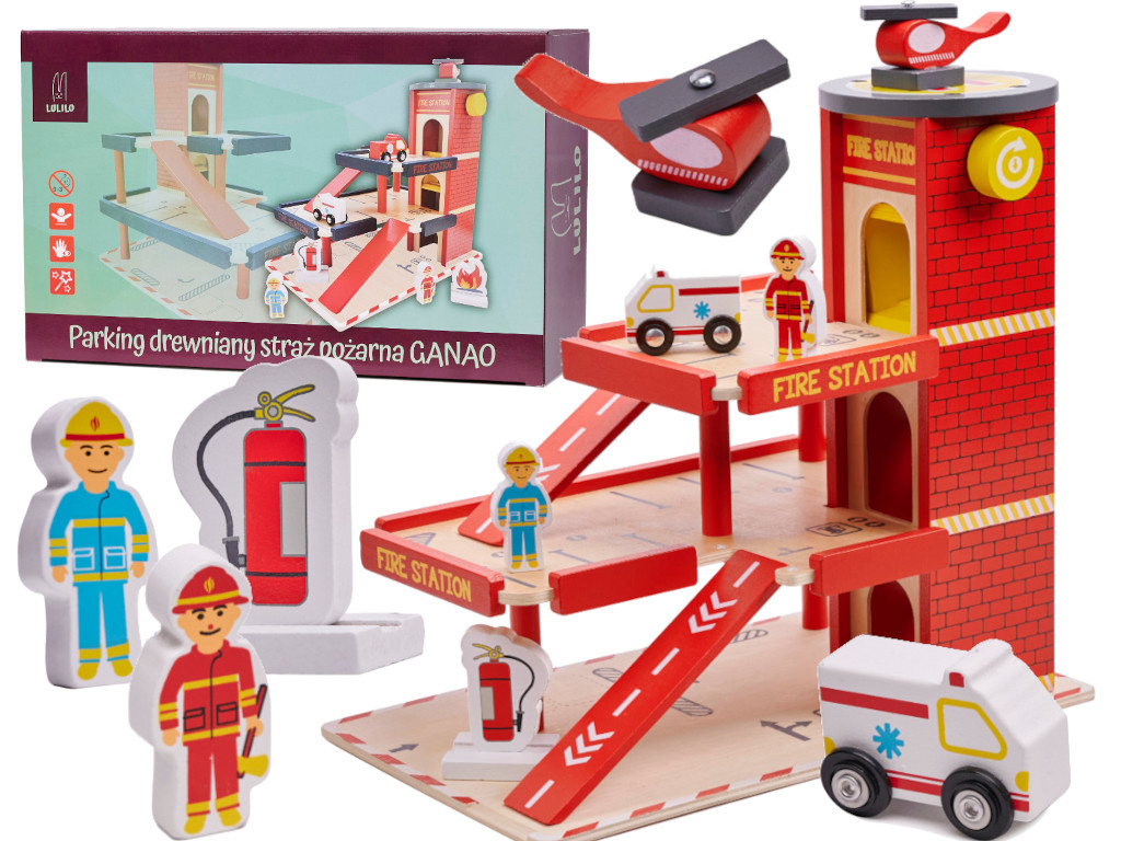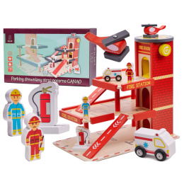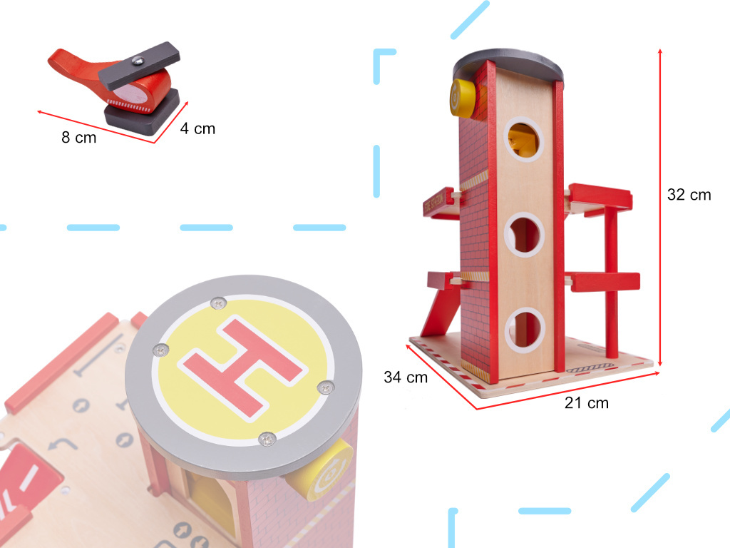 Super parkovisko s množstvom áut. Poteší malého fanúšika hasičov. Pozostáva zo 4 úrovní, ktoré poskytujú nekonečnú zábavu. Hračka stimuluje predstavivosť a rozvíja manuálne zručnosti dieťaťa. Materiál: drevo. Rozmery. garáž: 34x21x32cm.Úplný popis
