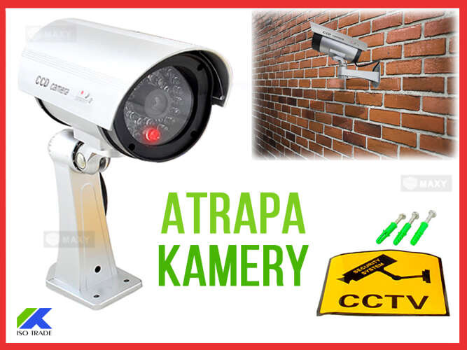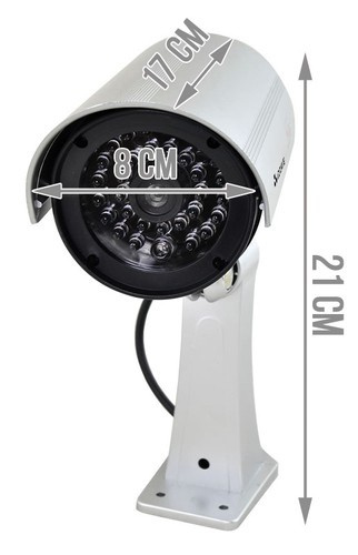 Dokonale vyzerajúca plastová imitácia bezpečnostnej kamery. Zariadenie je vybavené vstavanou červenou LED. Jednoduchá inštalácia. Maketa CCTV kamery pre monitorovanie. Vďaka použitiu všetkých prvkov, ktoré má bežná kamera, teda objektívu, kábla a držiaka, že figurína je presnou kópiou priemyselnej kamery. Na sledovanie ľudí nie je potrebné drahé povolenie. Zariadenie je vybavené vstavanou blikajúcou červenou LED. Kamera je prakticky bezúdržbová. Schopnosť otáčať a nakláňať fotoaparát. Kamera vytvára dojem, že sa na mieste nachádza monitorovací systém a odrádza prípadných narušiteľov.