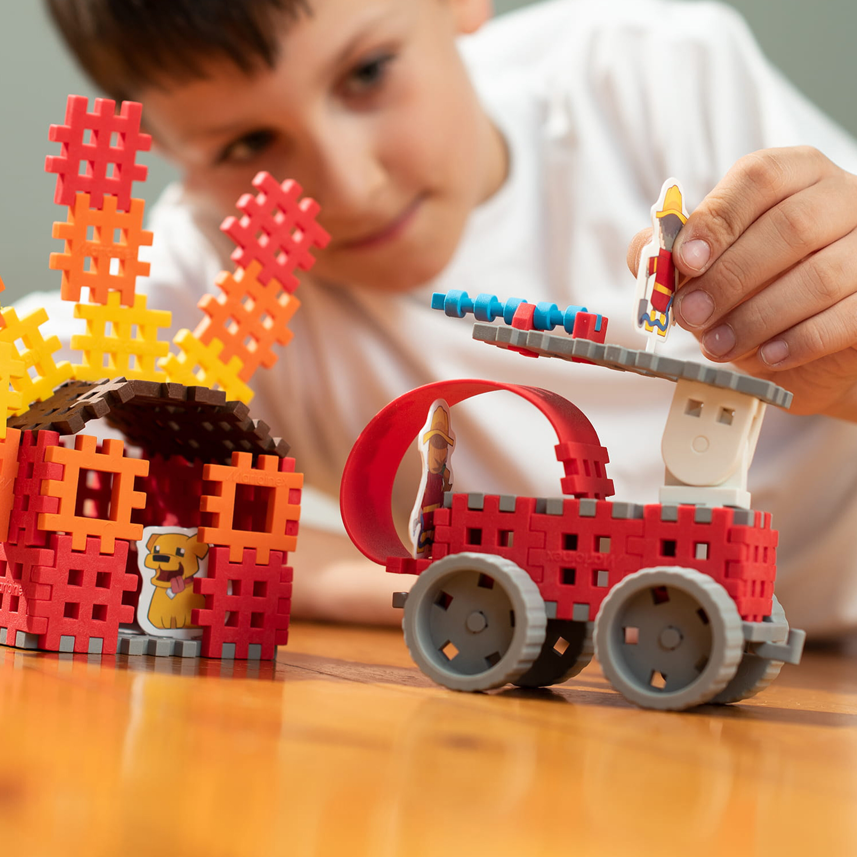 Počas hry vaše dieťa postaví horiacu budovu a hasičské auto.