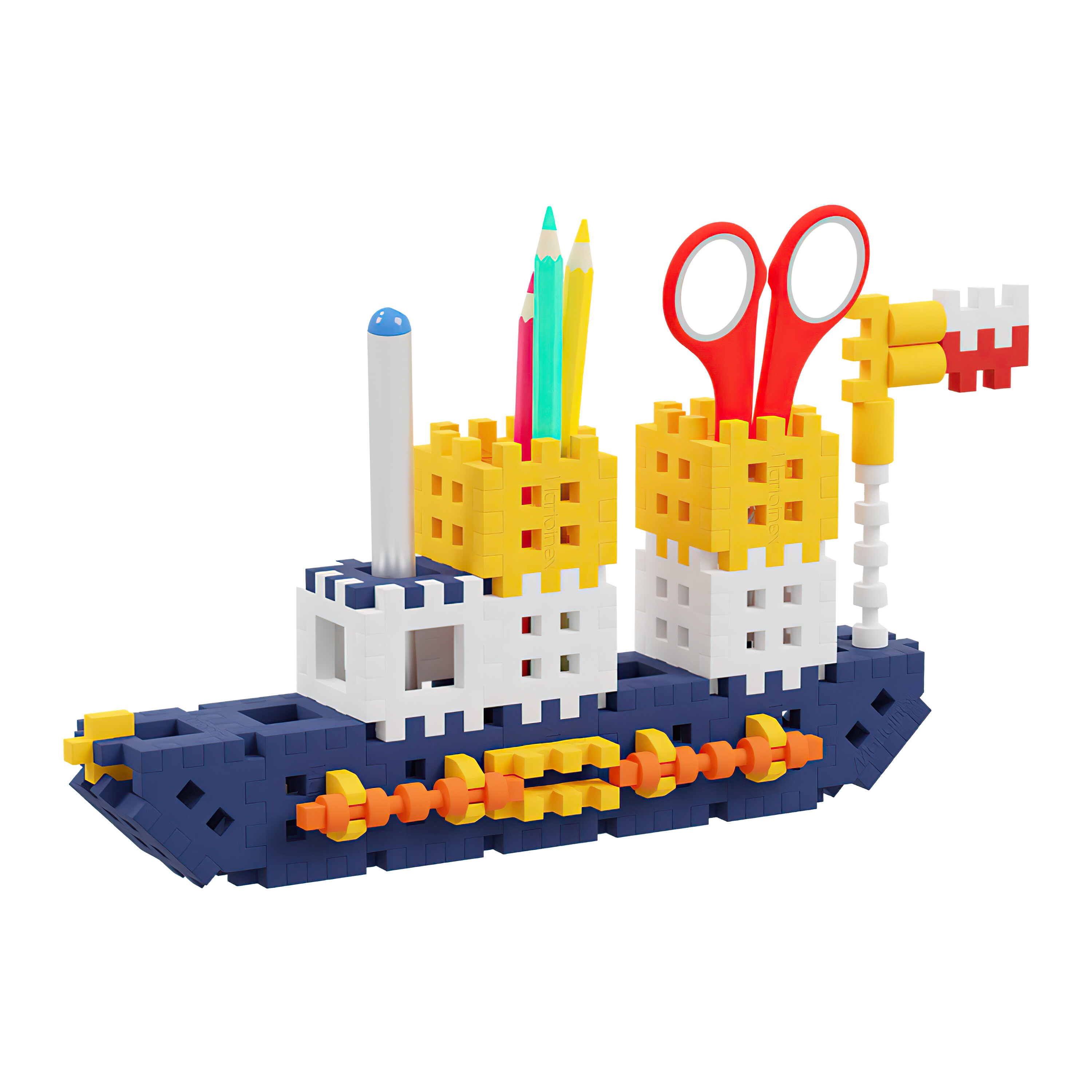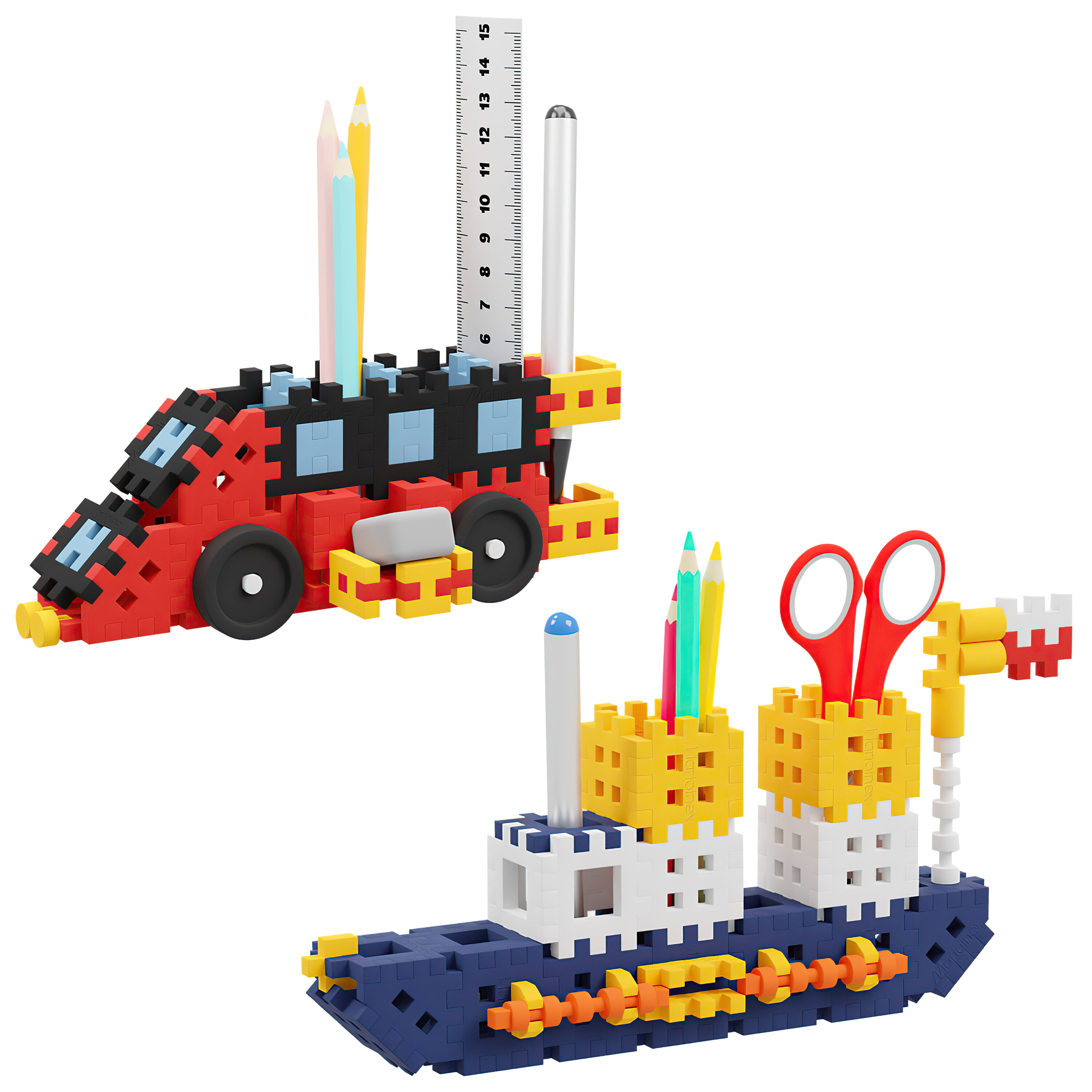 Vytvorte si vlastné organizéry na písacie potreby a umelecké potreby. Získate kreatívnu a veľmi praktickú dekoráciu na stôl. Sada obsahuje 140 prvkov na vytvorenie organizéra v tvare auta a lode, do ktorého sa zmestia všetky potrebné školské potreby.
