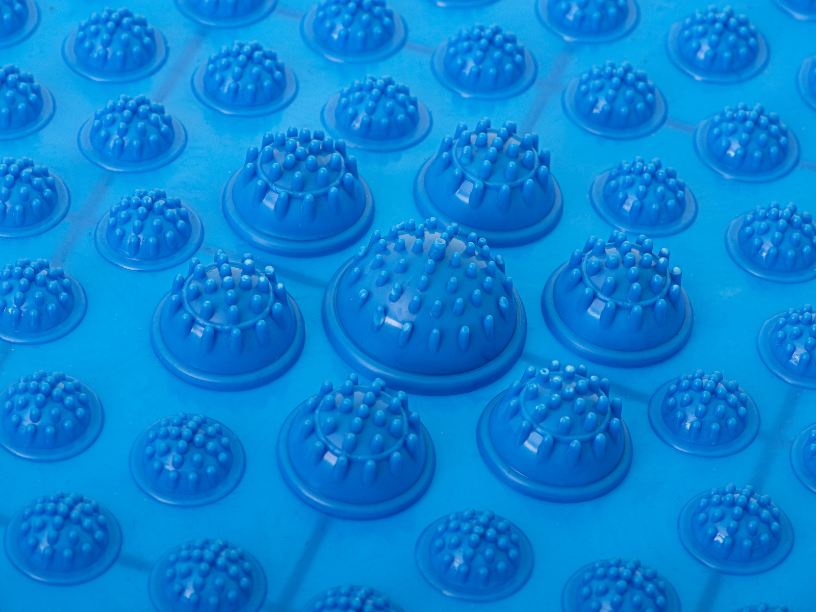 Na farebnej podložke nájdete množstvo vložiek, ktoré majú za úlohu stimulovať krvný obeh v chodidlách.