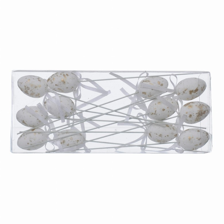 Metalické polystyrénové vajíčka na špajli 12 ks