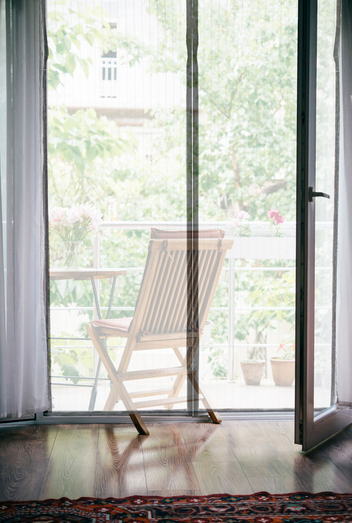 Moskytiéra sa skladá z dvoch častí. Je dôležité, aby časti s magnetmi boli uprostred - tým sa zabezpečí, že sa sieťka proti komárom pri prechode automaticky otvorí a zatvorí.