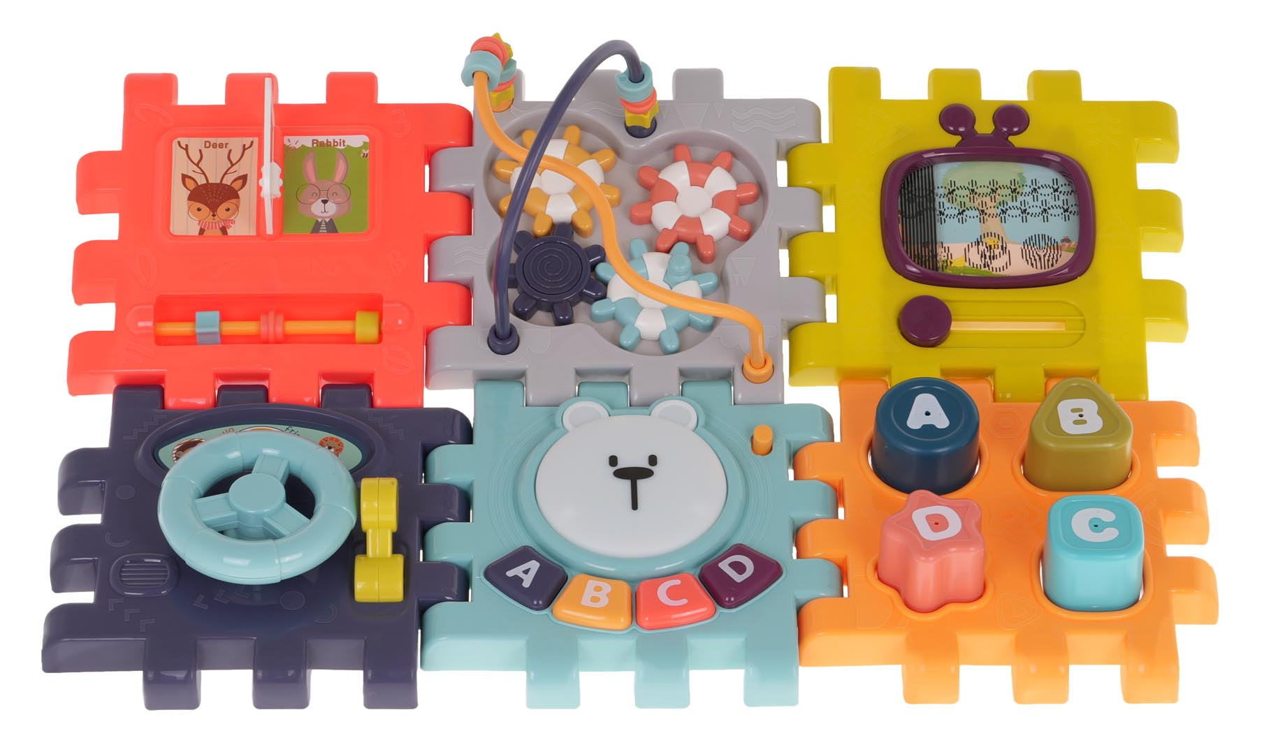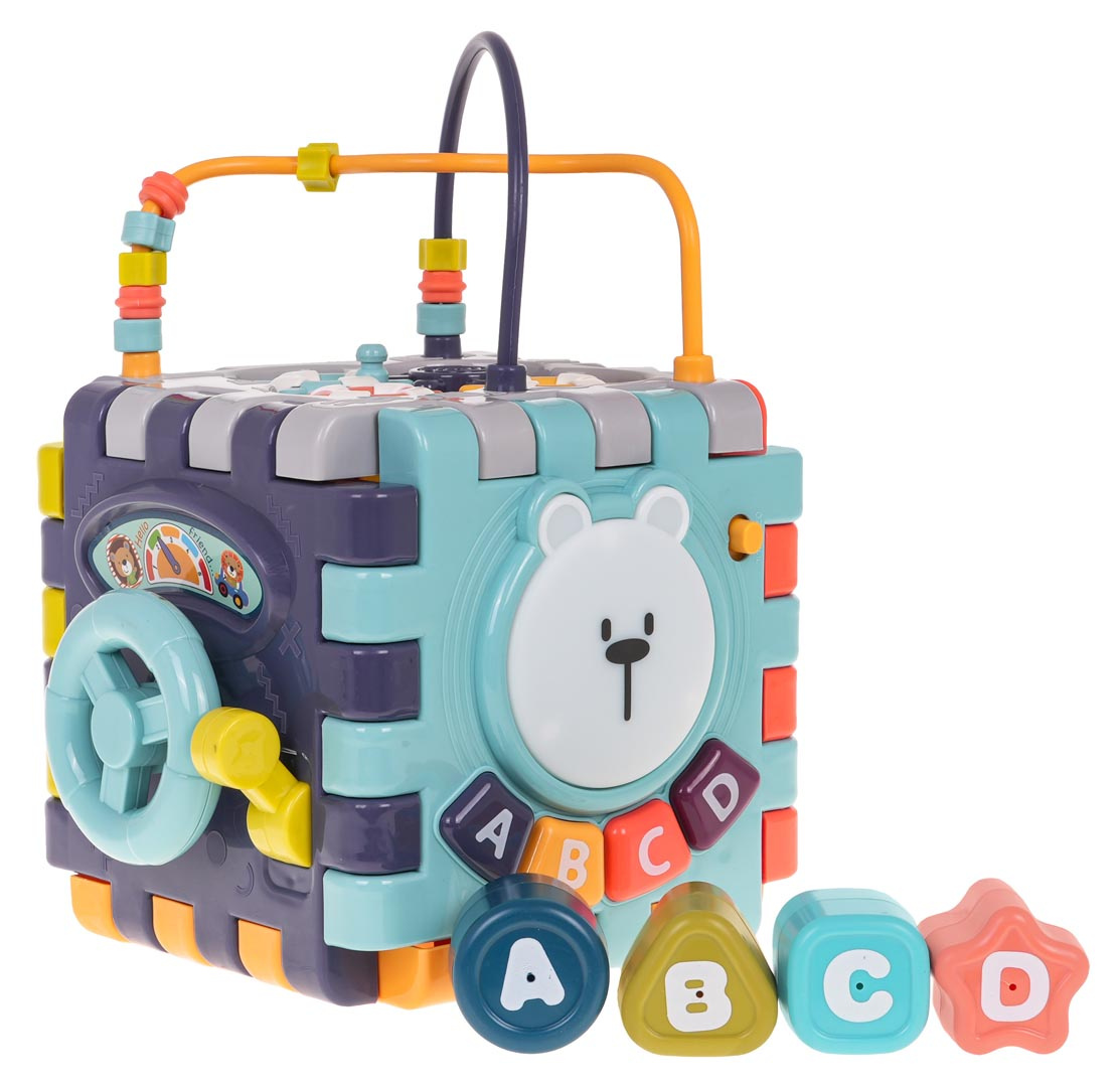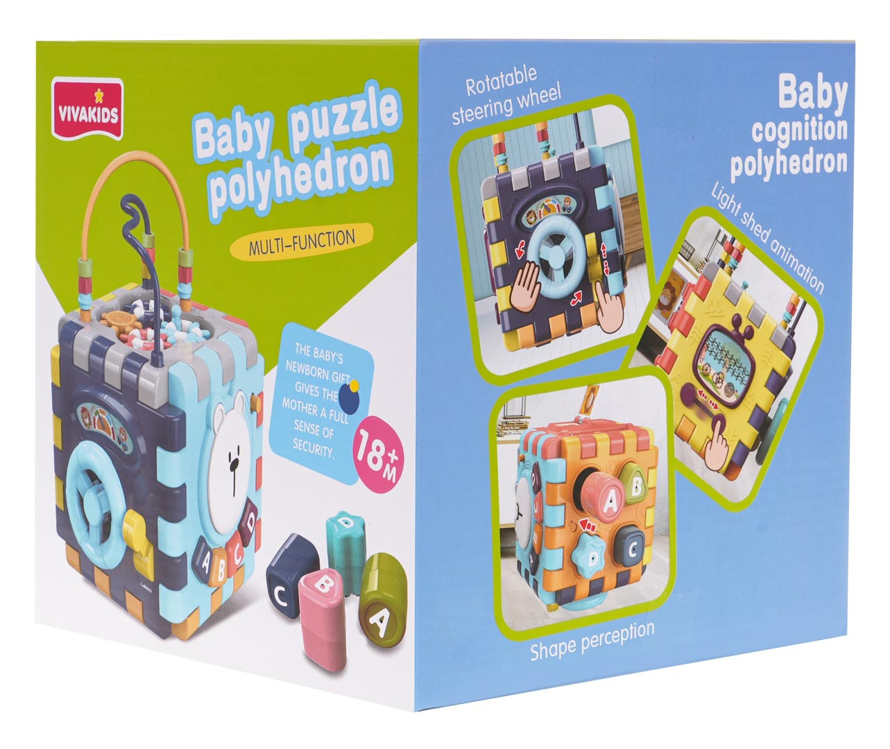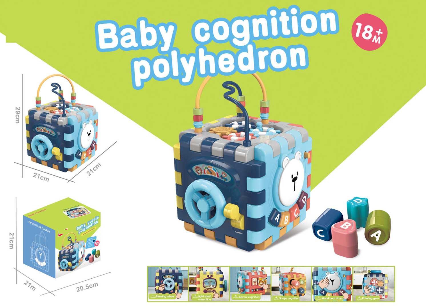 Multifunkčná interaktívna kocka so zvukovými a svetelnými efektmi pre deti od 18 mesiacov. Každá stena boxu poskytne dieťaťu množstvo zábavy a interaktívnej hry. Zvukové a svetelné efekty a bohatstvo farieb upútajú pozornosť dieťaťa a povzbudia ho k hre. Kocku môžeme rozkladať a hrať sa s jednotlivými prvkami naplocho. Hračka je napájaná batériami typu 3 x AAA 1,5 V (nie sú súčasťou balenia).