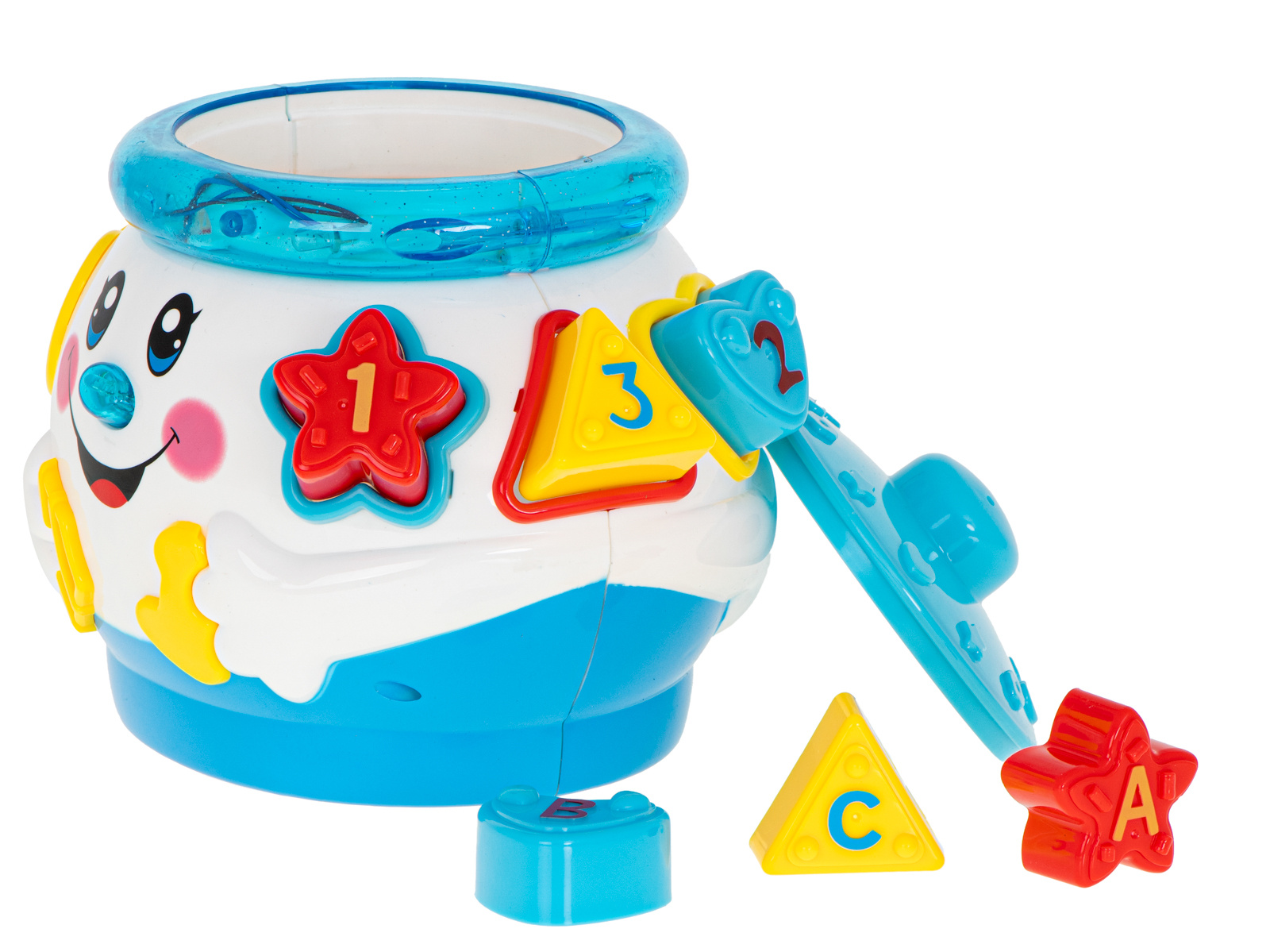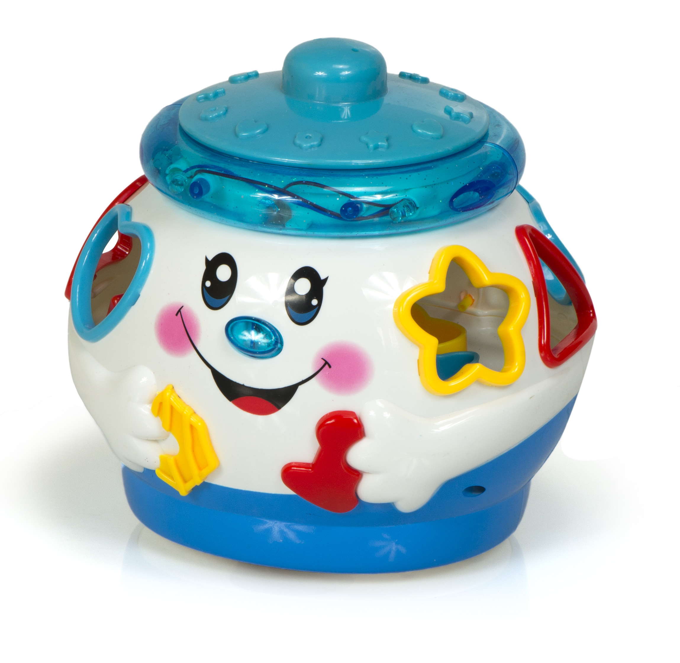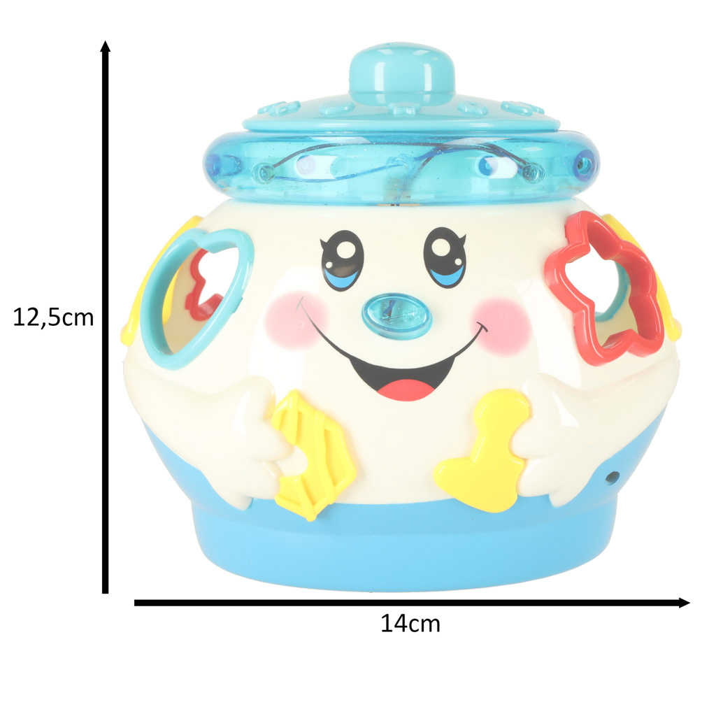 Kúzelný hrniec na hranie. Po zapnutí hrniec hrá melódiu a jazdí po miestnosti.