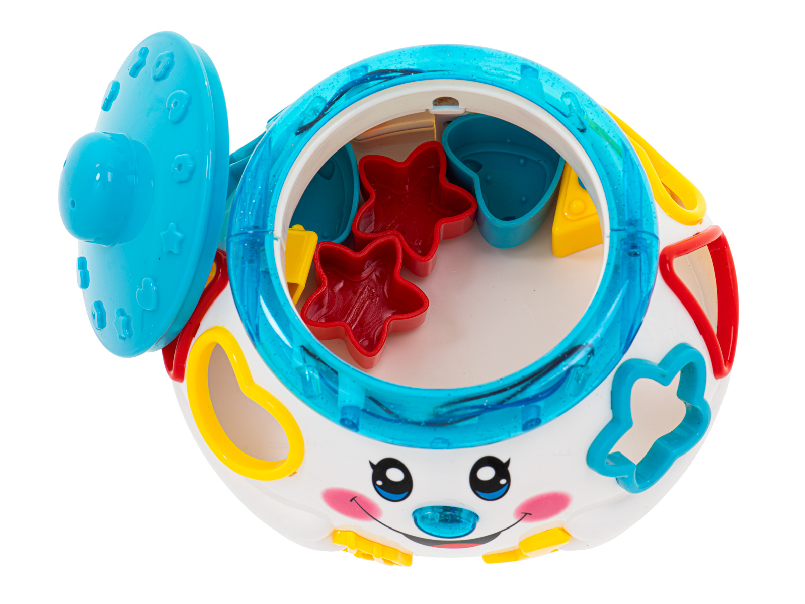 - Sada navyše obsahuje 6 kociek rôznych tvarov, ktoré musí dieťa vložiť do príslušných otvorov.