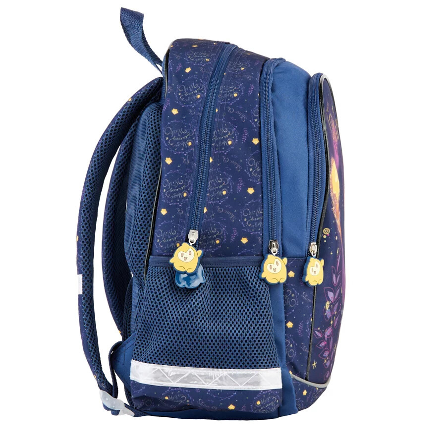 Tri komory a dve bočné vrecká unesú úplne všetko.Školský batoh je vyrobený z veľmi kvalitného polyesteru, vďaka čomu je vysoko odolný a nepremokavý.