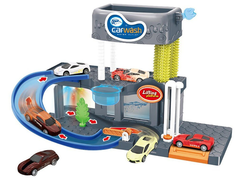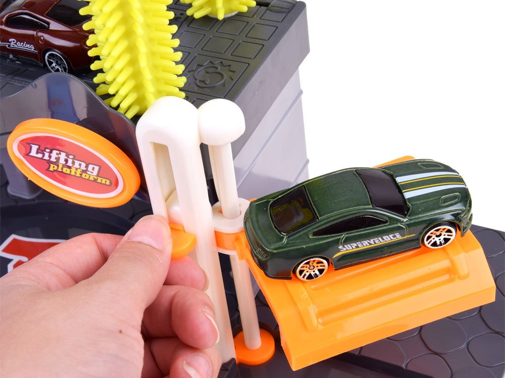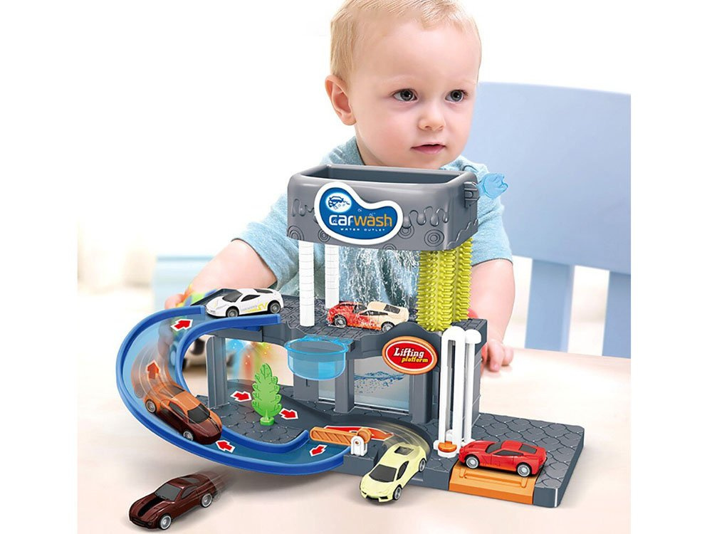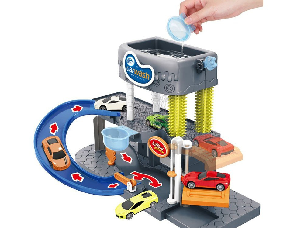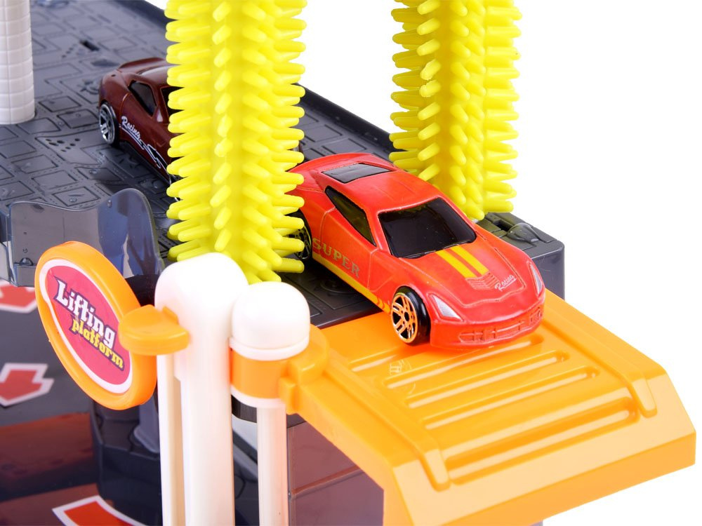 Dvojúrovňová umývačka je určená pre vyznávačov čistoty vozidiel. Umývačka s rampou, výťahom, skutočnou lietajúcou vodou, silikónovými kefami, zvukovými a svetelnými efektmi poteší každé dieťa.